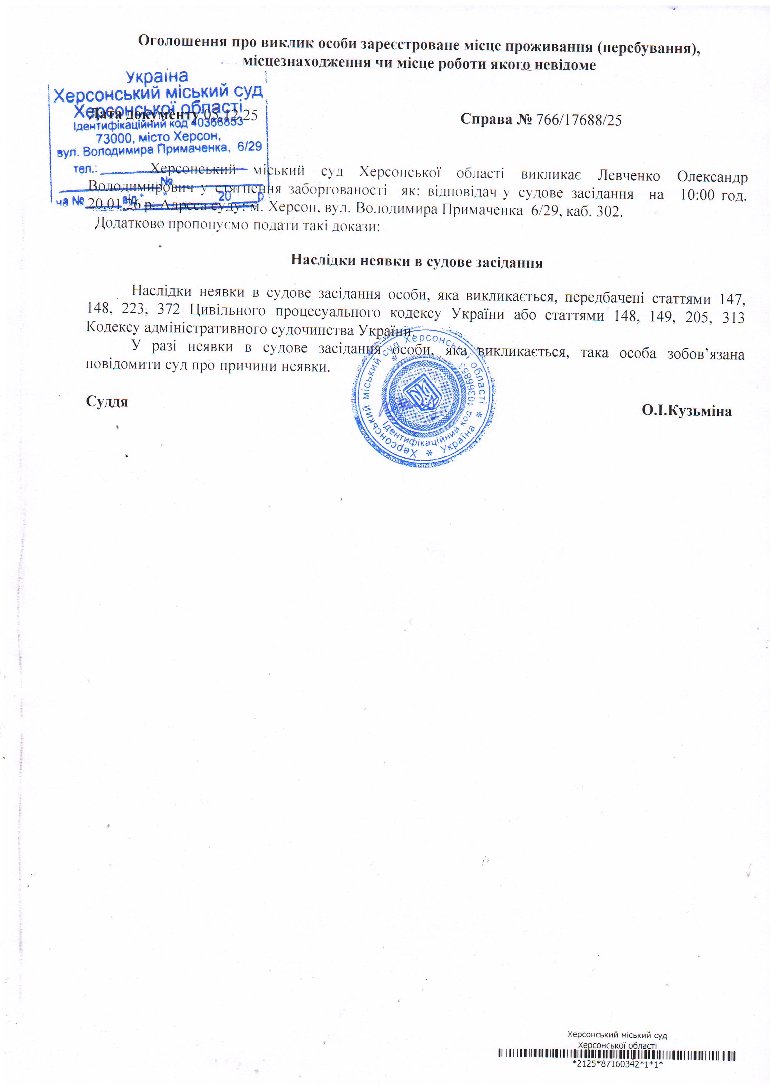 ОГОЛОШЕННЯ ПРО ВИКЛИК ДО СУДУ