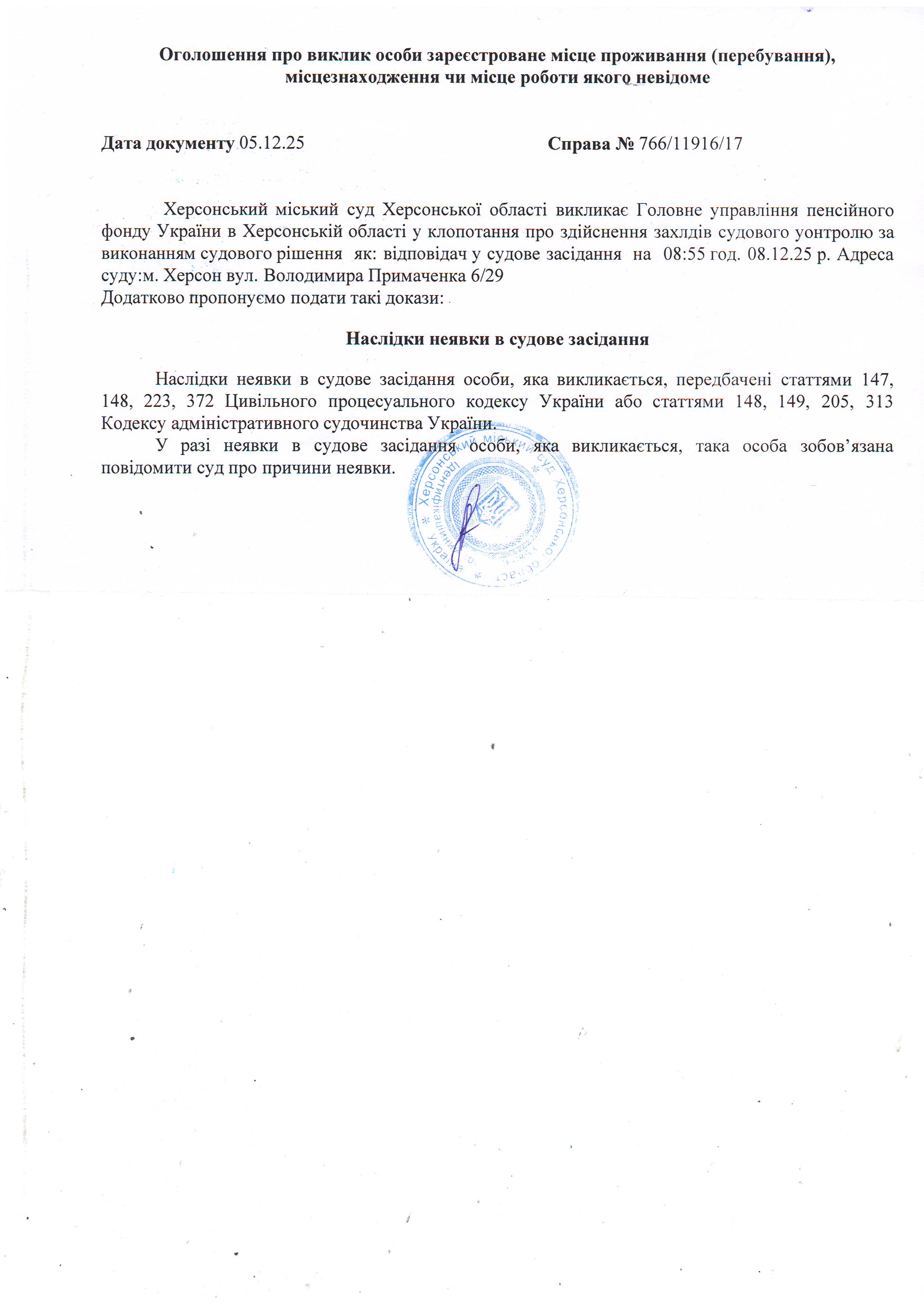 Оголошення для Головного управління пенсійного фонду України в Херсонській області