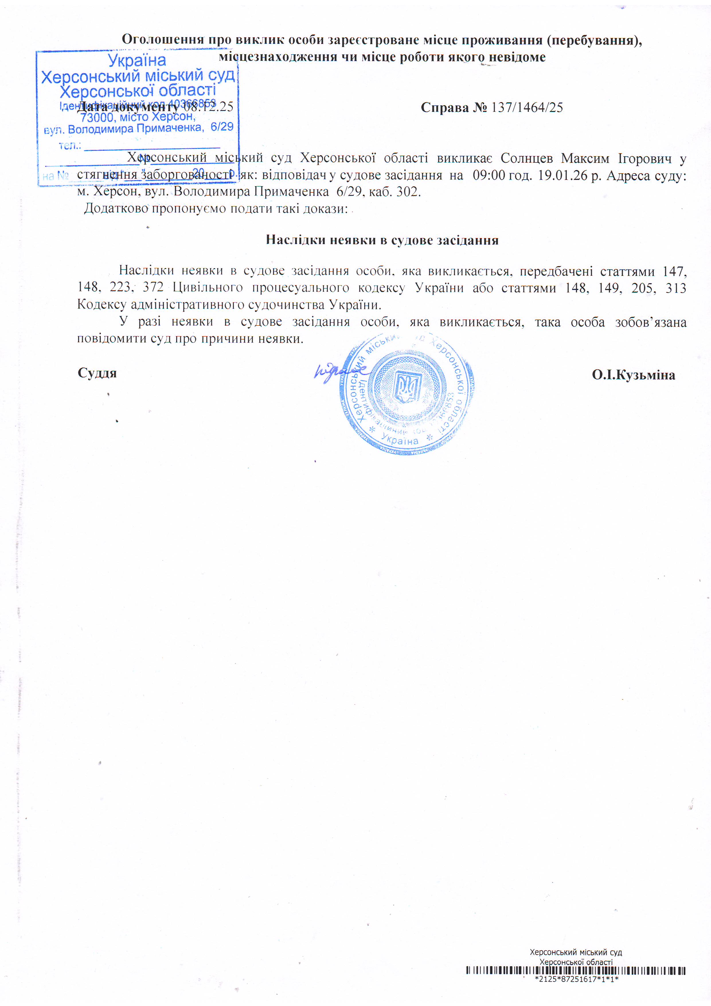 ОГОЛОШЕННЯ ПРО ВИКЛИК ДО СУДУ
