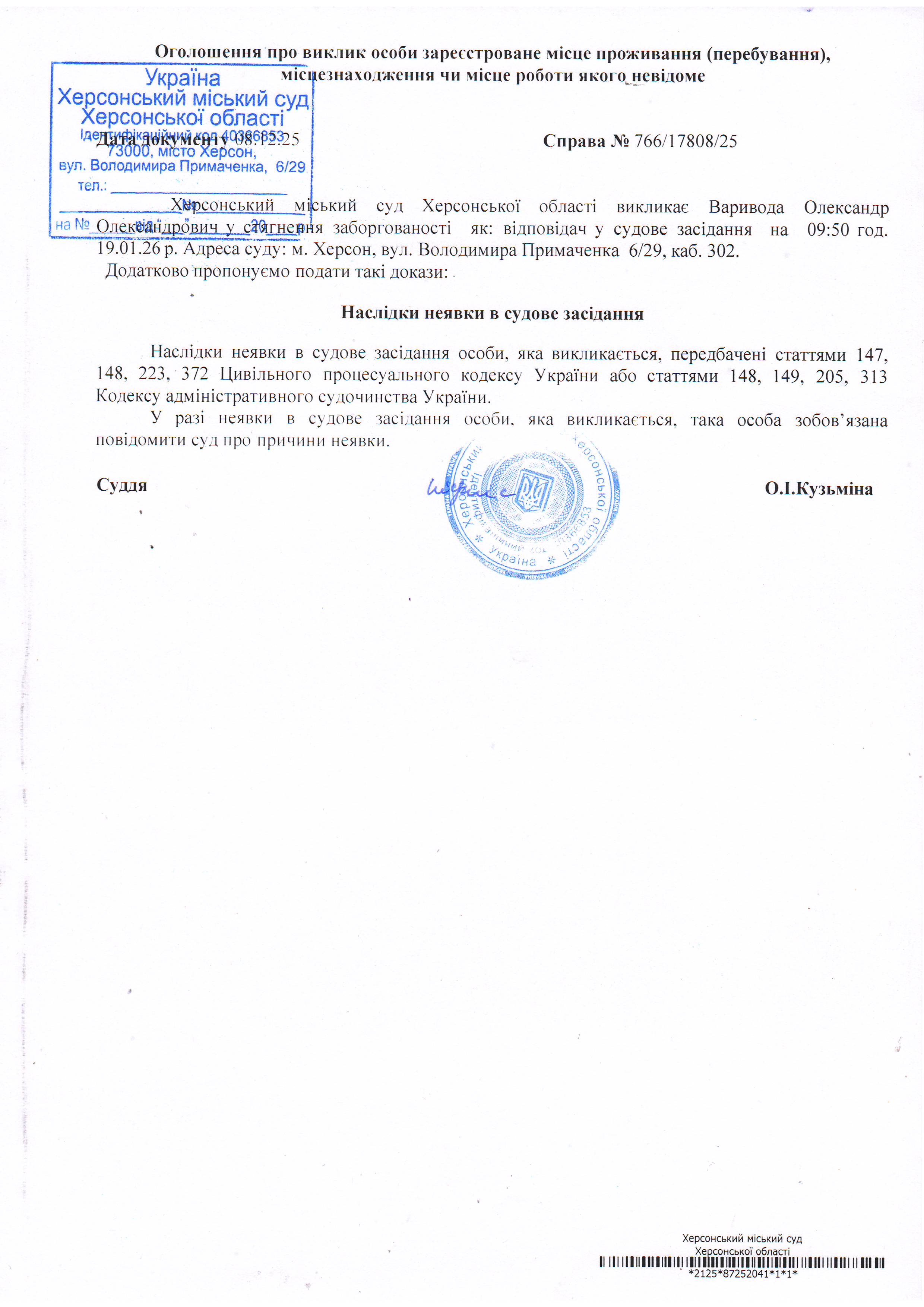 ОГОЛОШЕННЯ ПРО ВИКЛИК ДО СУДУ