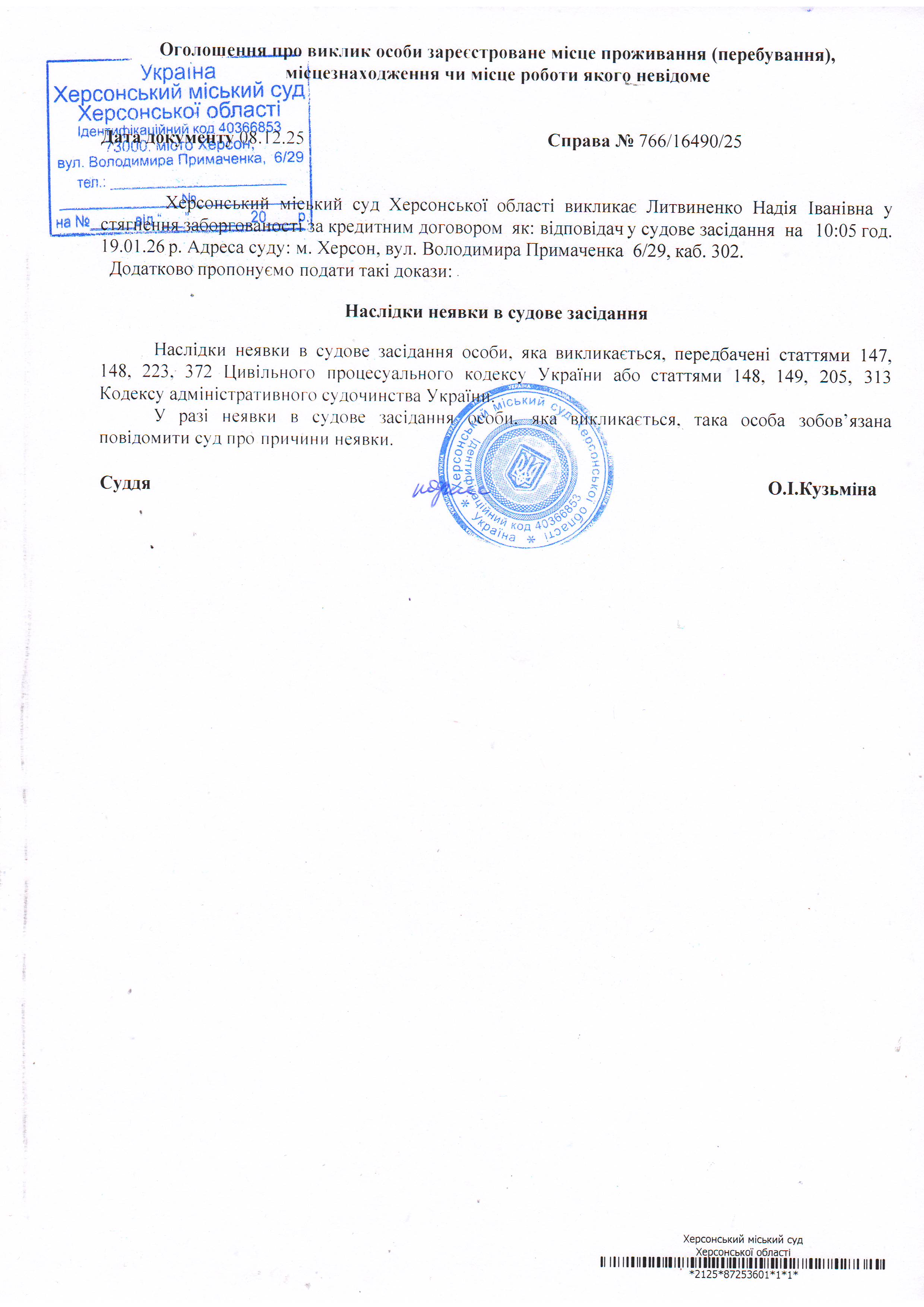 ОГОЛОШЕННЯ ПРО ВИКЛИК ДО СУДУ