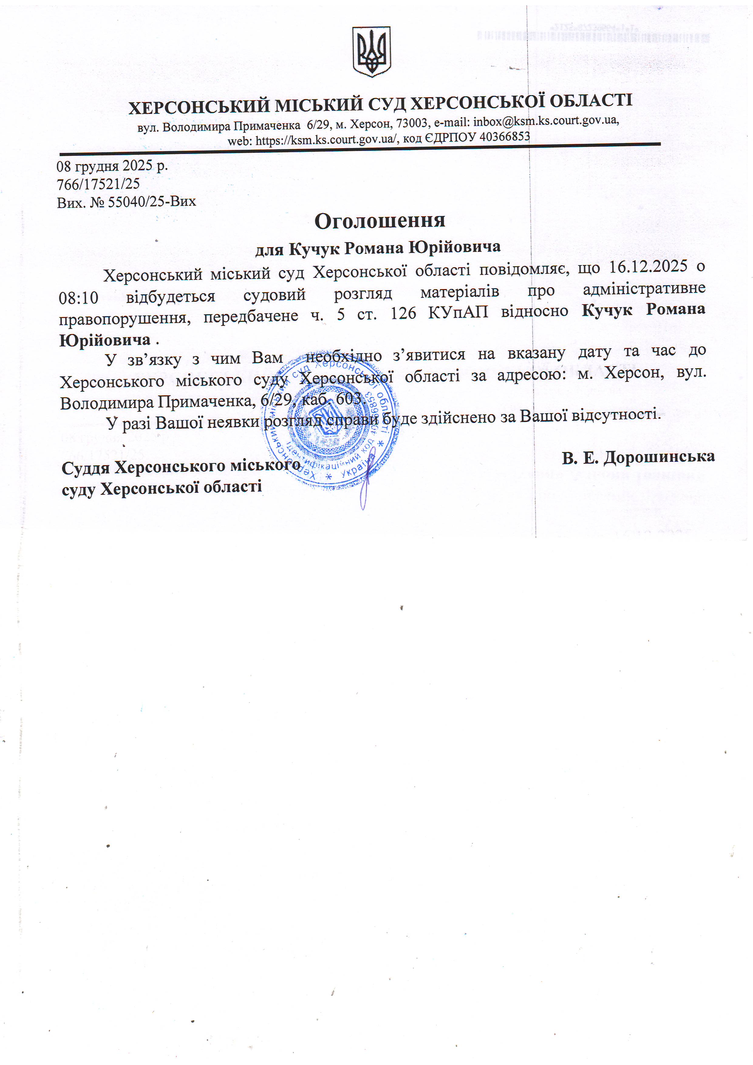 ОГОЛОШЕННЯ ПРО ВИКЛИК ДО СУДУ