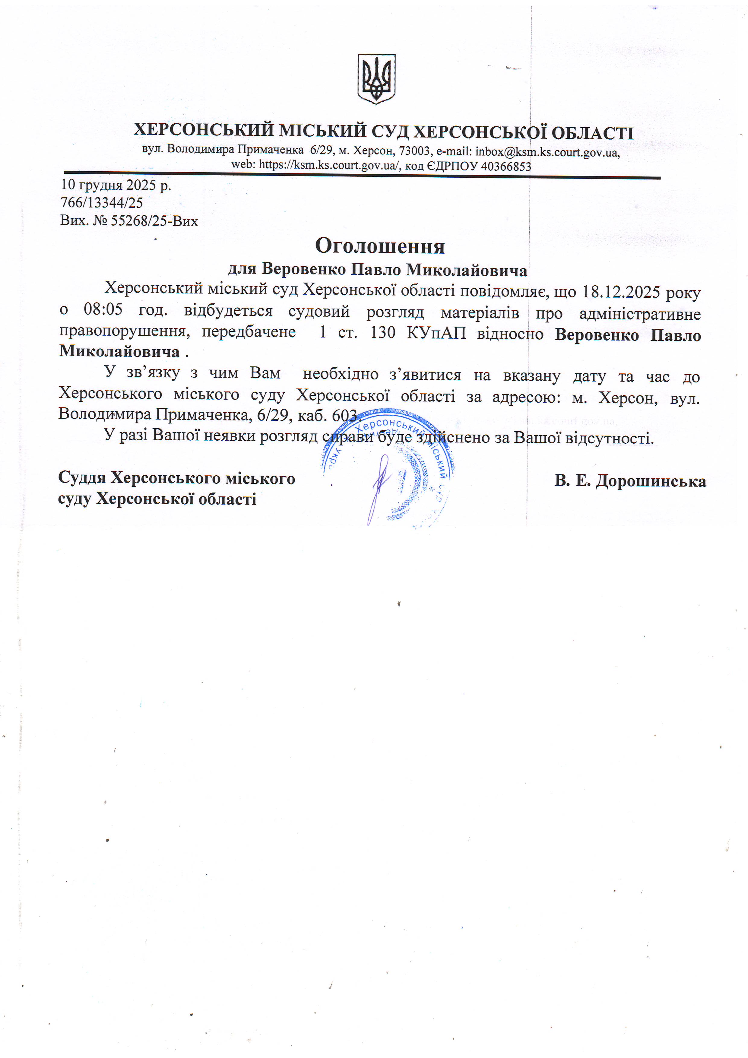 ОГОЛОШЕННЯ ПРО ВИКЛИК ДО СУДУ