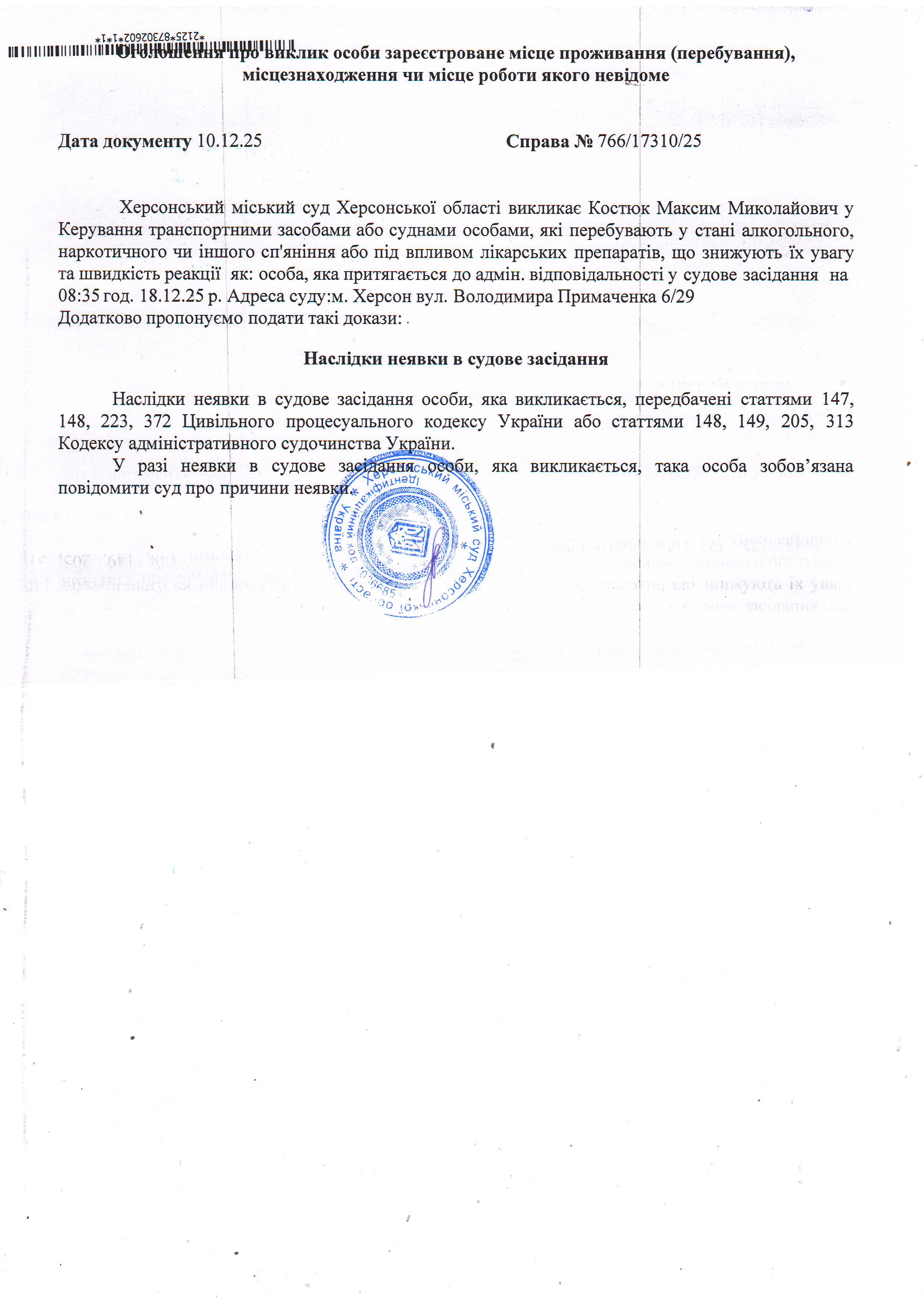 ОГОЛОШЕННЯ ПРО ВИКЛИК ДО СУДУ