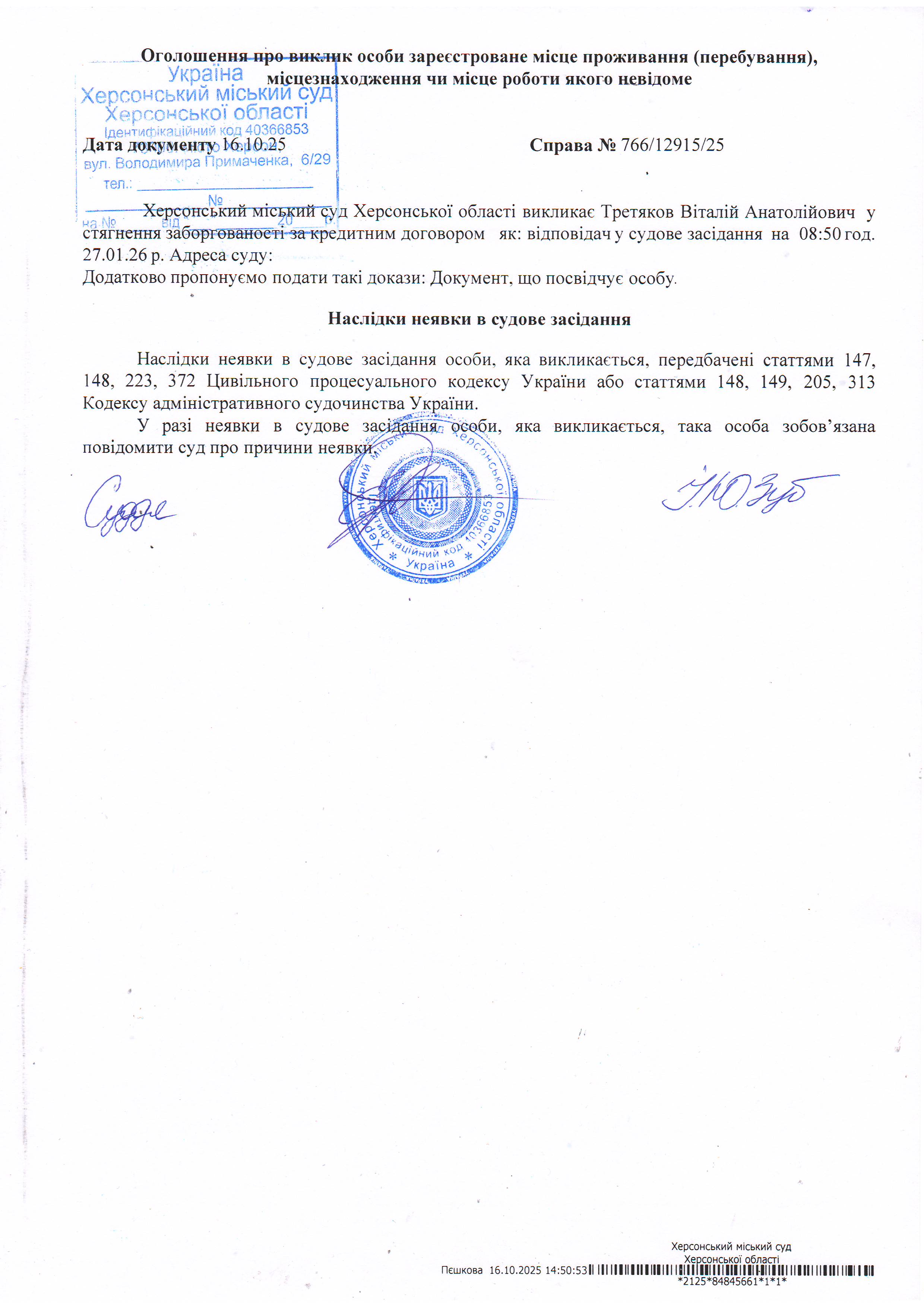 ПОВІДОМЛЕННЯ ПРО РОЗГЛЯД СПРАВИ БЕЗ ВИКЛИКУ СТОРІН