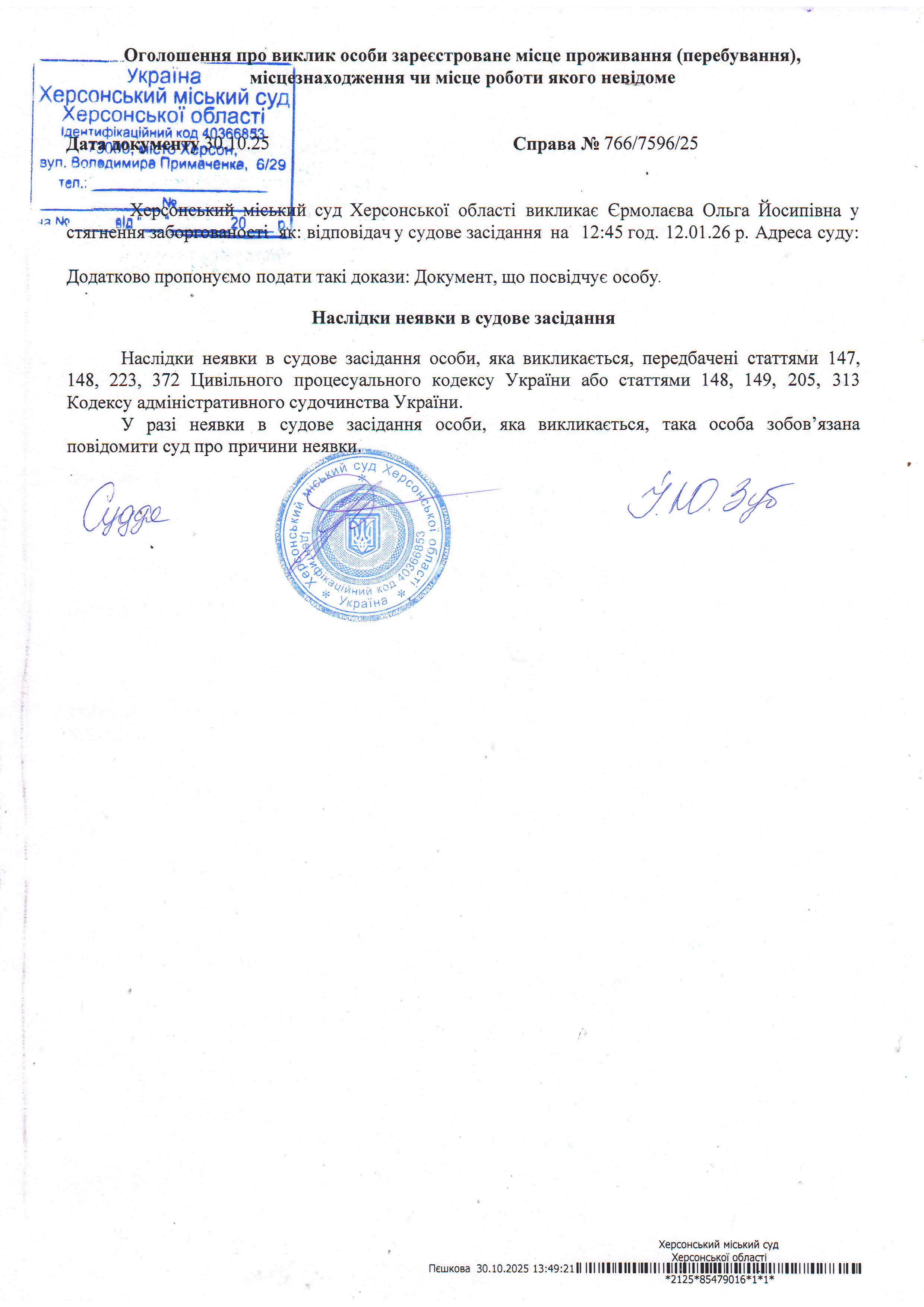 ОГОЛОШЕННЯ ПРО ВИКЛИК ДО СУДУ