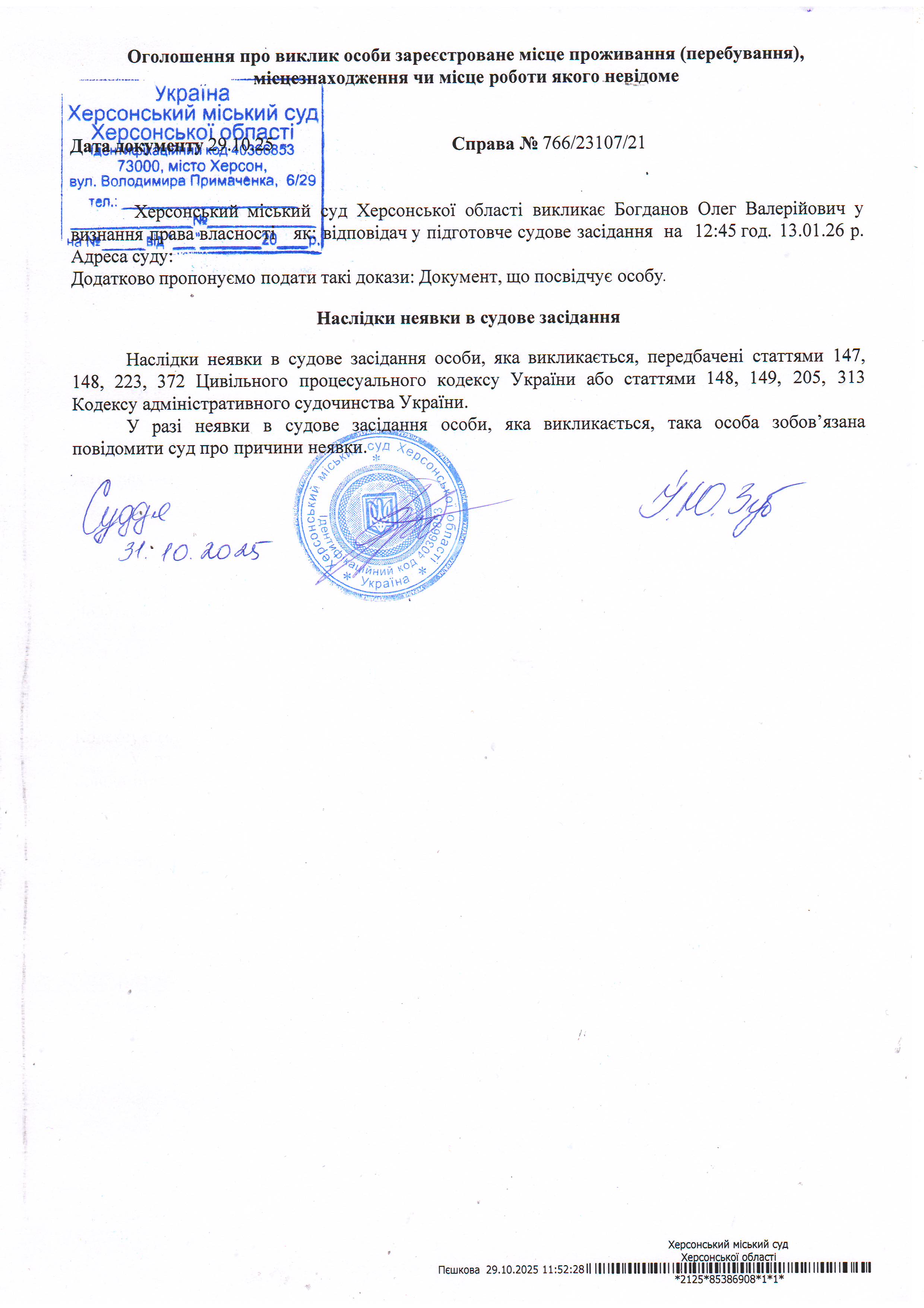 ОГОЛОШЕННЯ ПРО ВИКЛИК ДО СУДУ