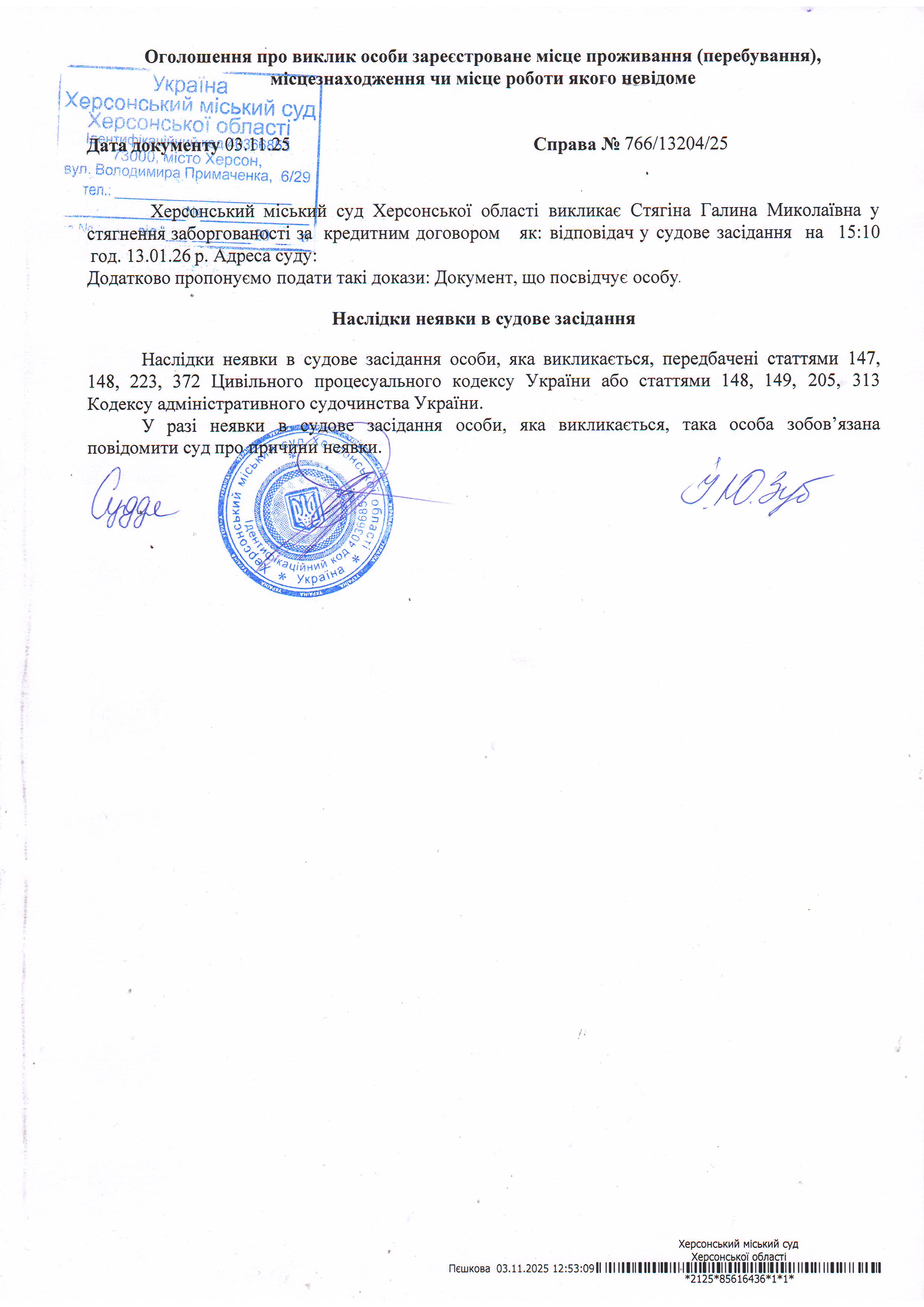 ОГОЛОШЕННЯ ПРО ВИКЛИК ДО СУДУ