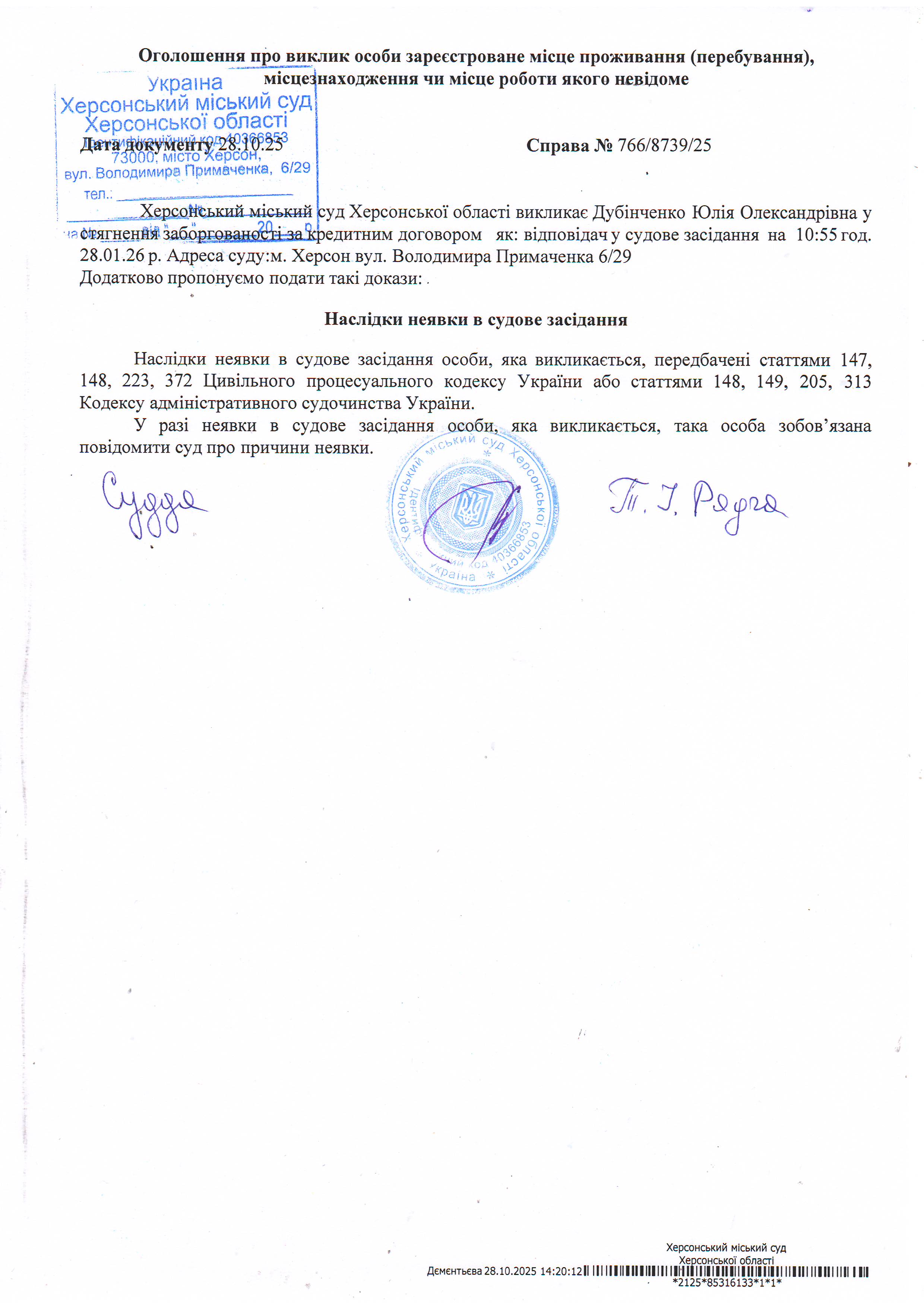ОГОЛОШЕННЯ ПРО ВИКЛИК ДО СУДУ