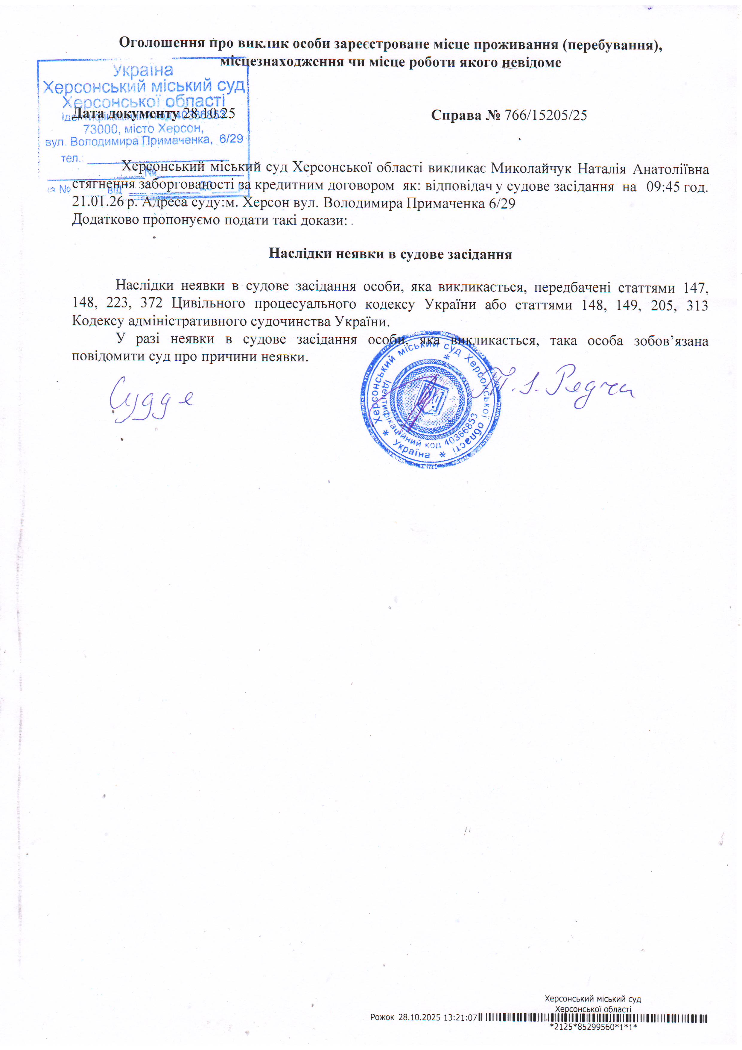 ОГОЛОШЕННЯ ПРО ВИКЛИК ДО СУДУ
