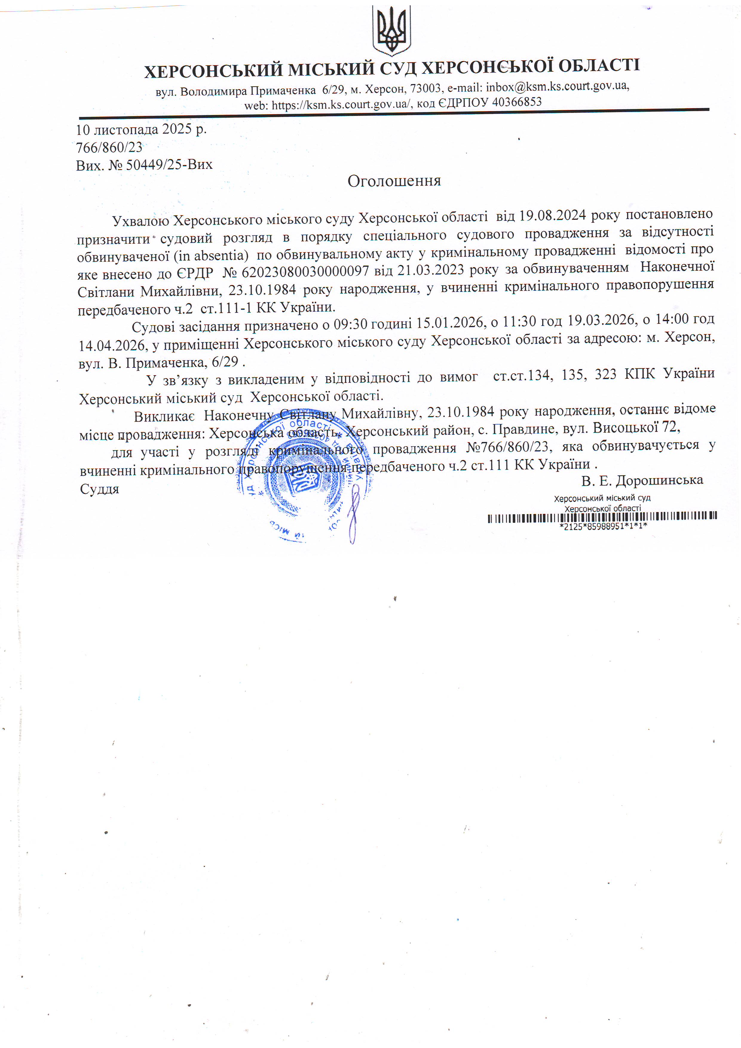 ОГОЛОШЕННЯ ПРО ВИКЛИК ДО СУДУ