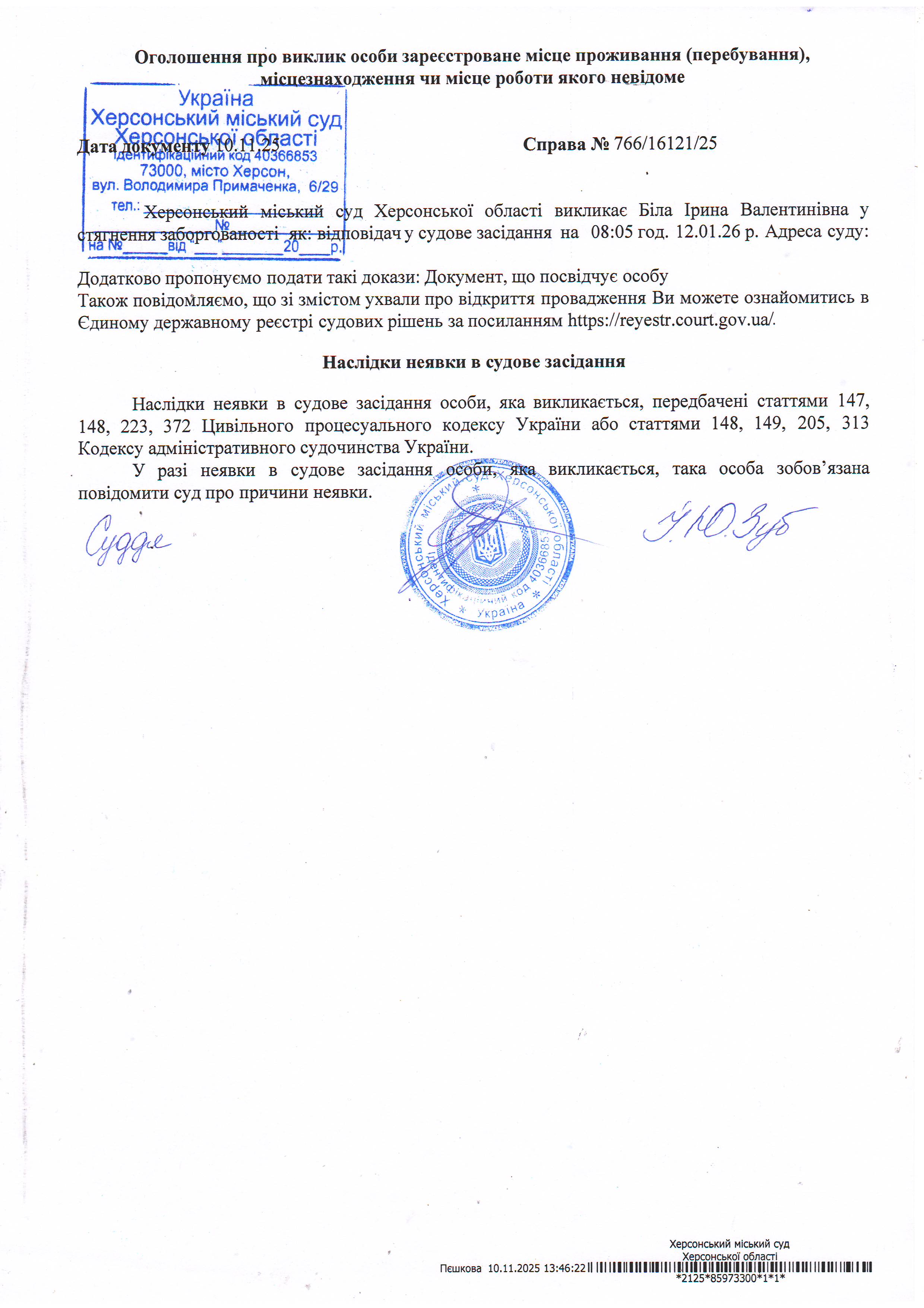 ОГОЛОШЕННЯ ПРО ВИКЛИК ДО СУДУ