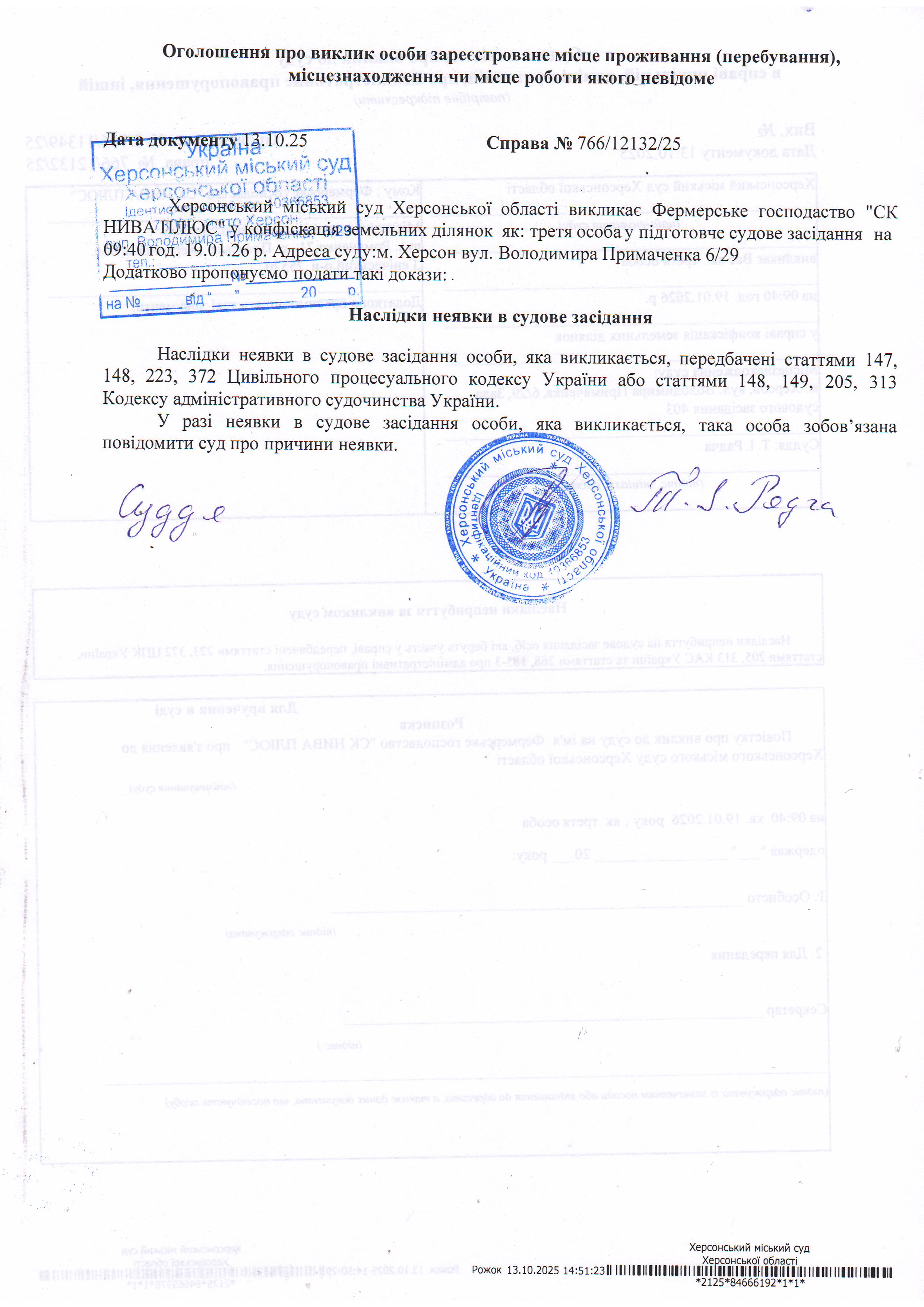 ОГОЛОШЕННЯ ПРО ВИКЛИК ДО СУДУ