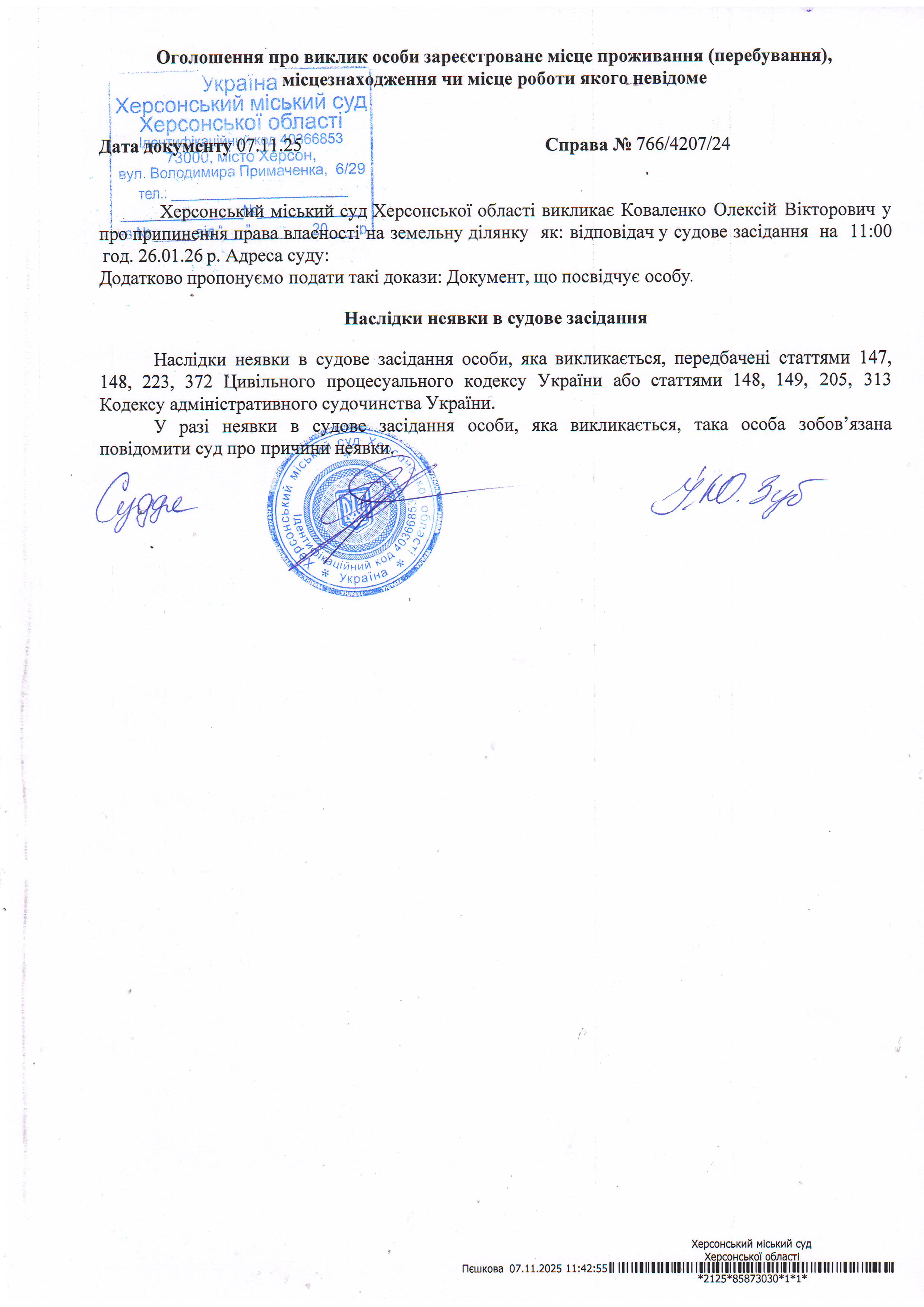 ОГОЛОШЕННЯ ПРО ВИКЛИК ДО СУДУ