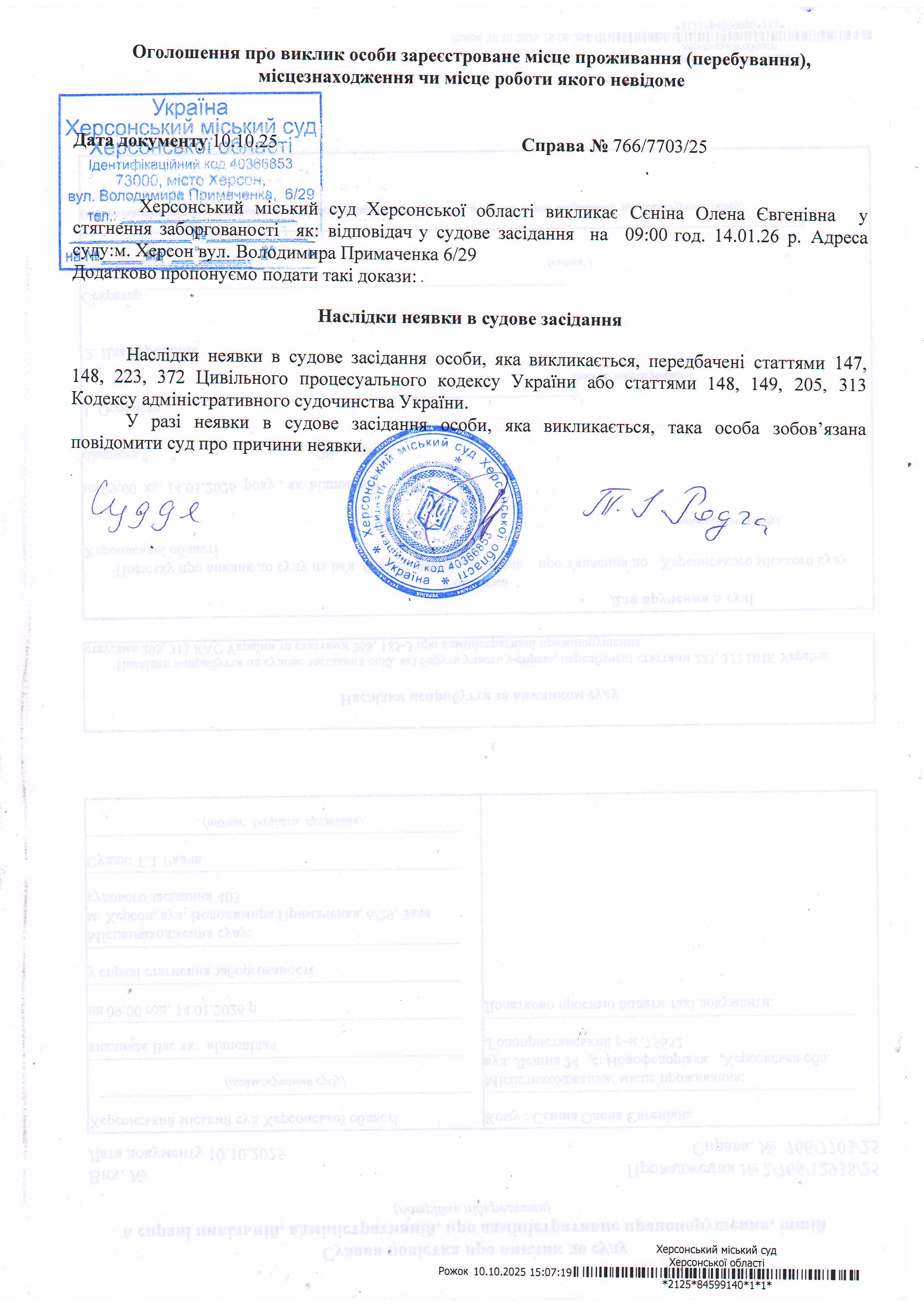 ОГОЛОШЕННЯ ПРО ВИКЛИК ДО СУДУ