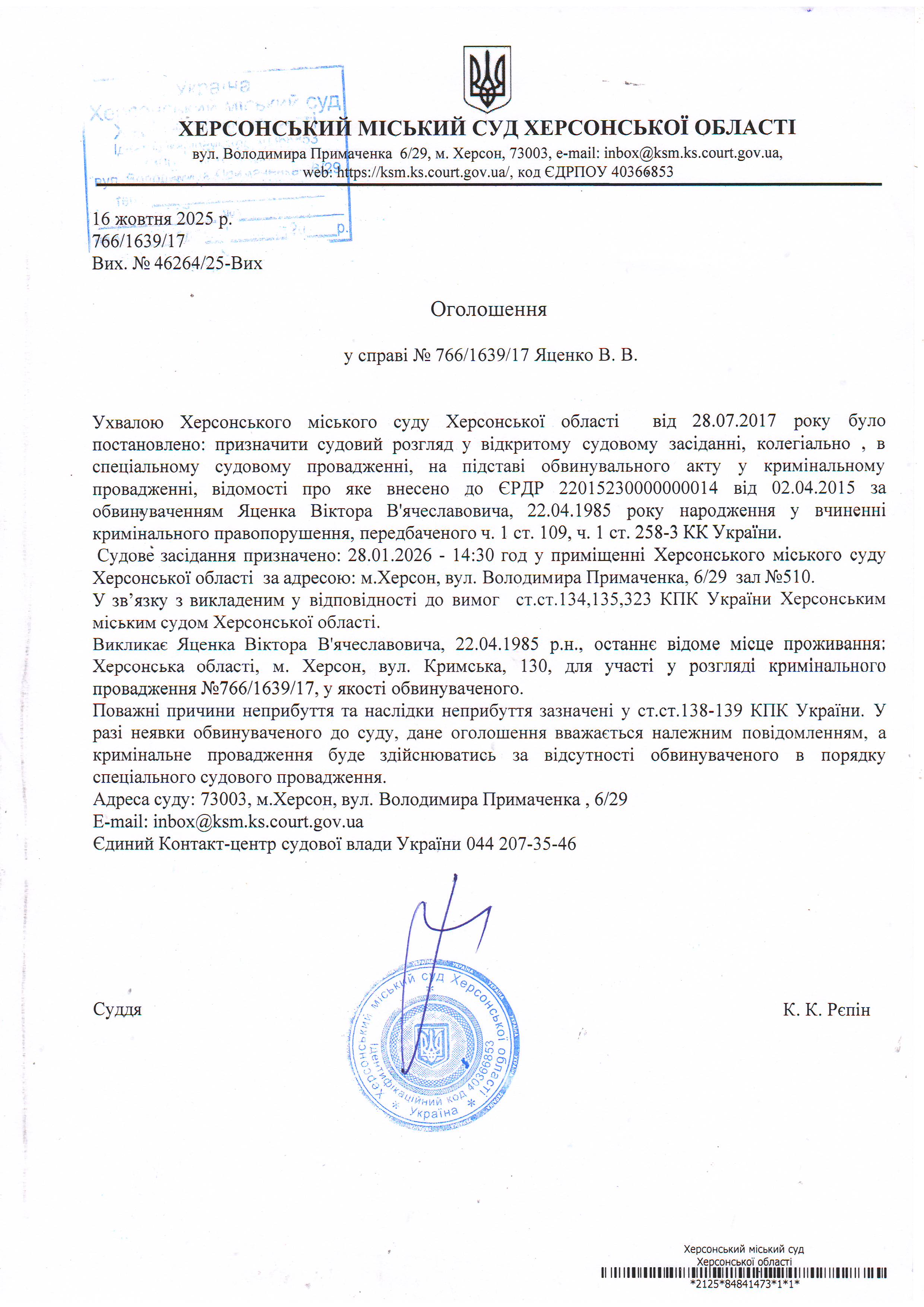 ОГОЛОШЕННЯ ПРО ВИКЛИК ДО СУДУ