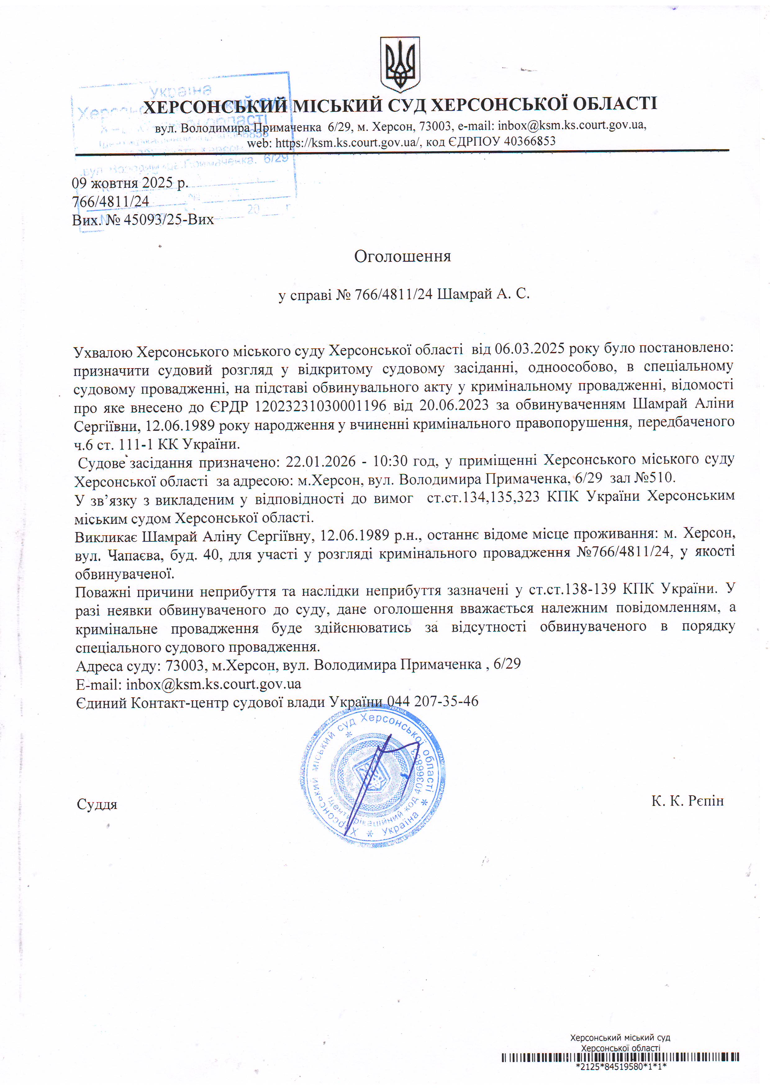 ОГОЛОШЕННЯ ПРО ВИКЛИК ДО СУДУ