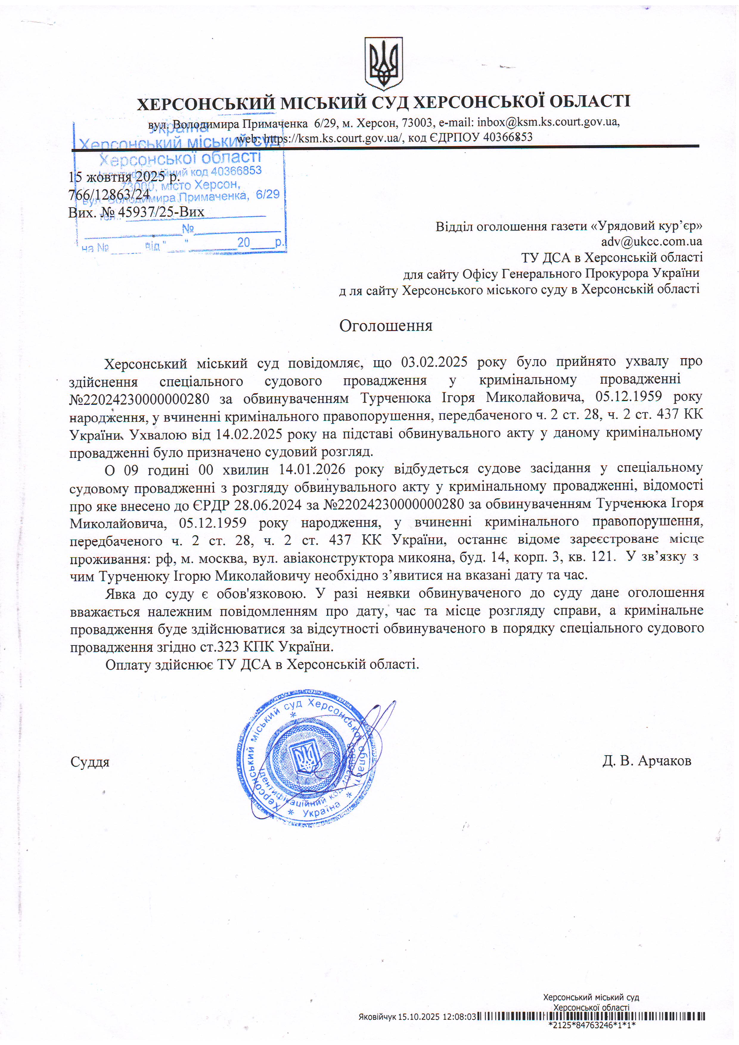 Інформація про місцезнаходження Херсонського міського суду Херсонської області