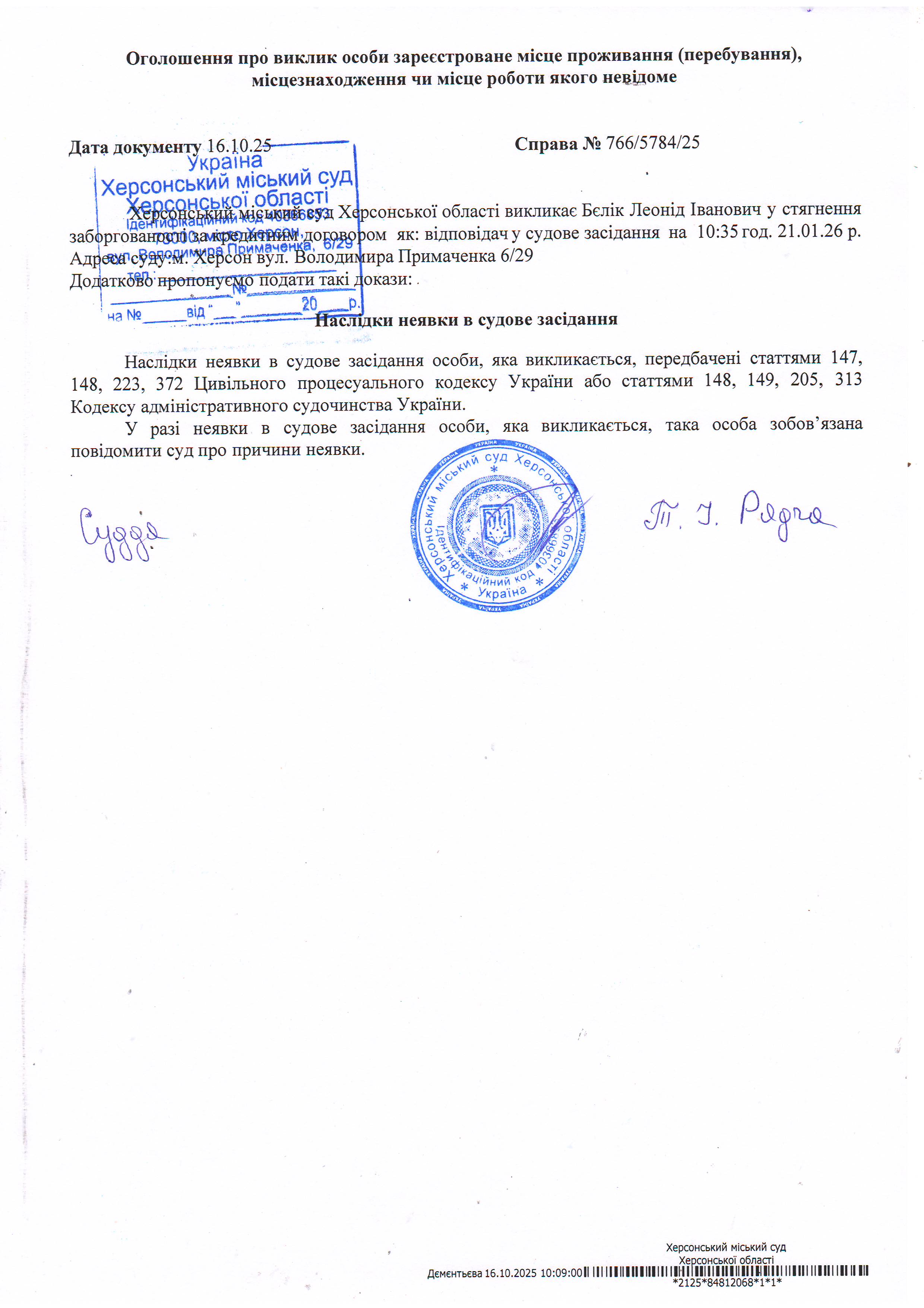 ОГОЛОШЕННЯ ПРО ВИКЛИК ДО СУДУ