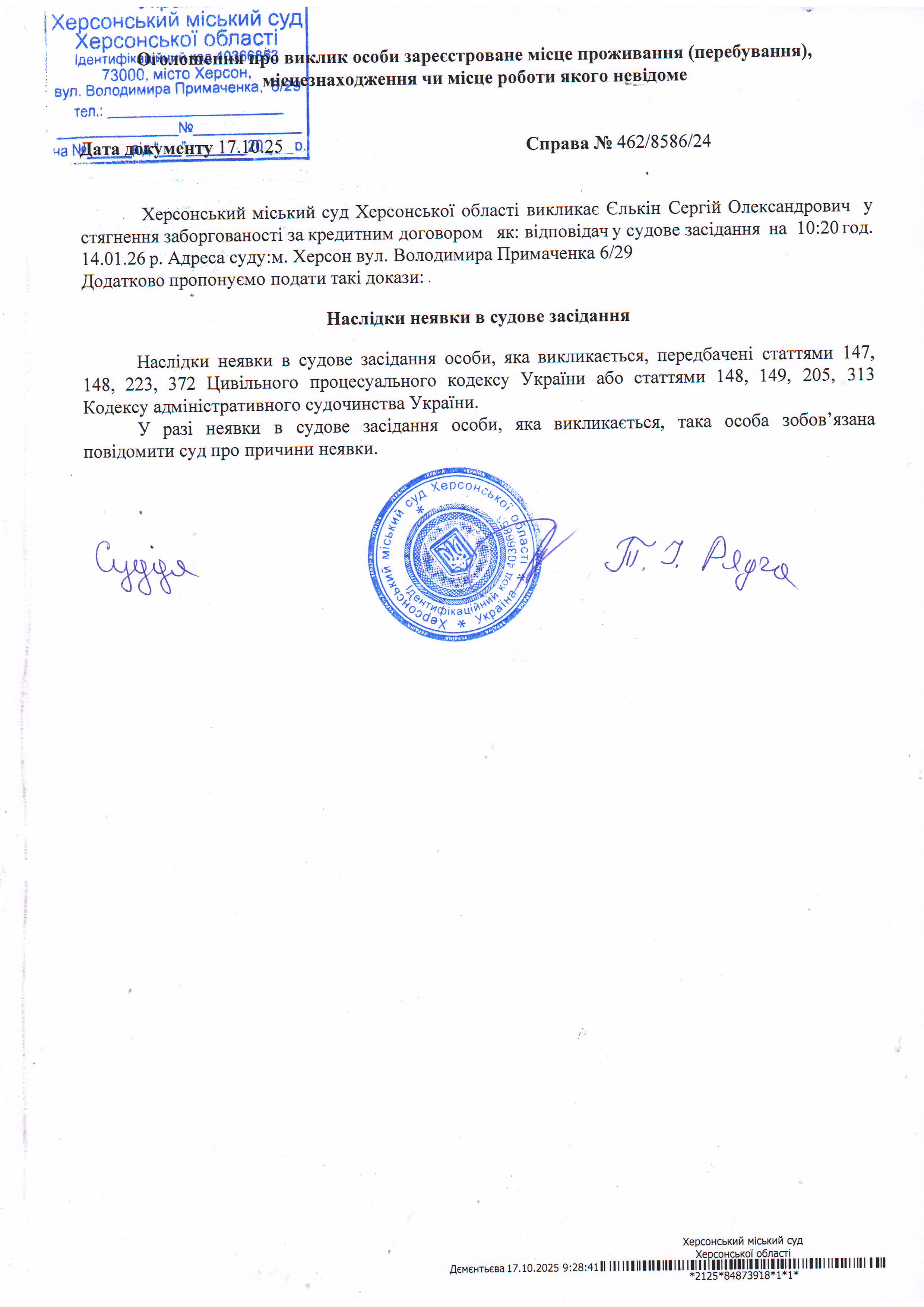 ОГОЛОШЕННЯ ПРО ВИКЛИК ДО СУДУ
