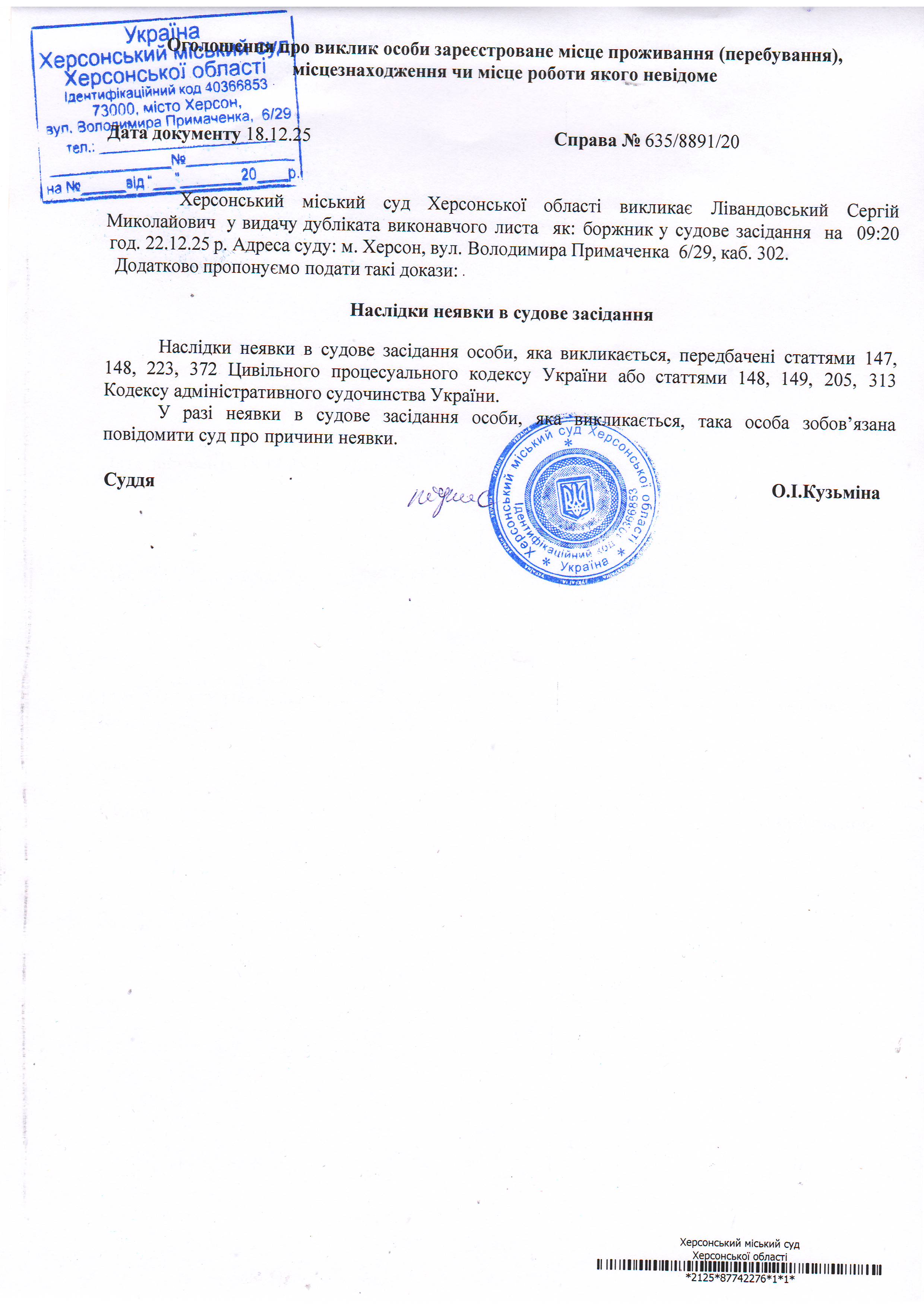 Інформація про місцезнаходження Херсонського міського суду Херсонської області