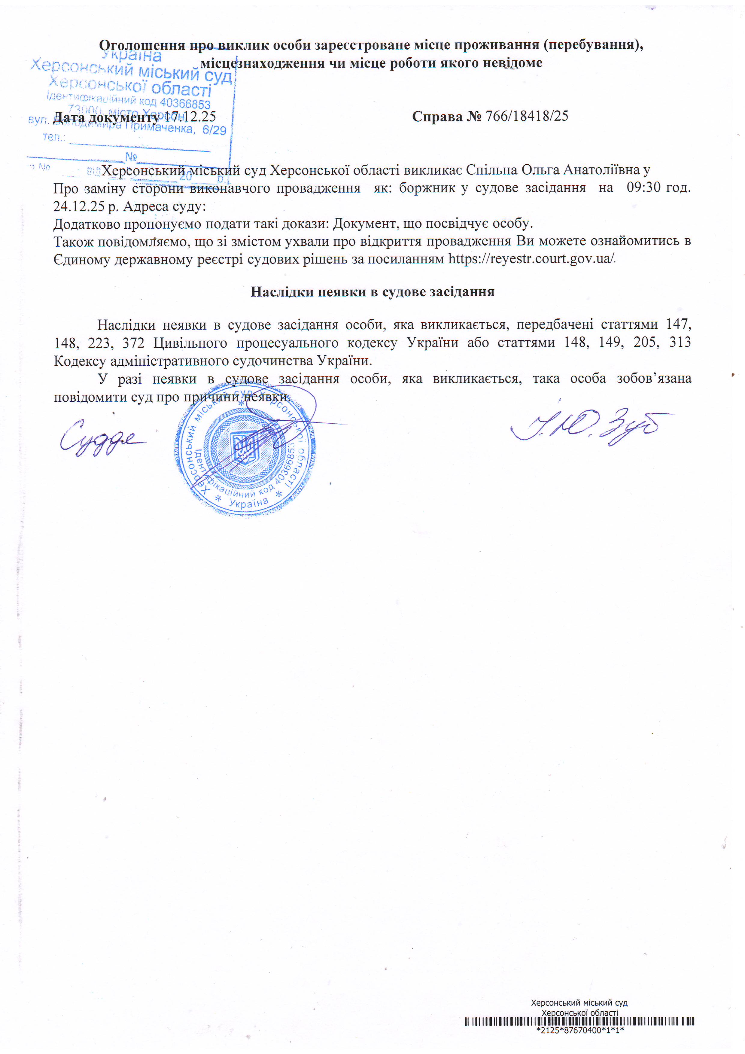 ОГОЛОШЕННЯ ПРО ВИКЛИК ДО СУДУ