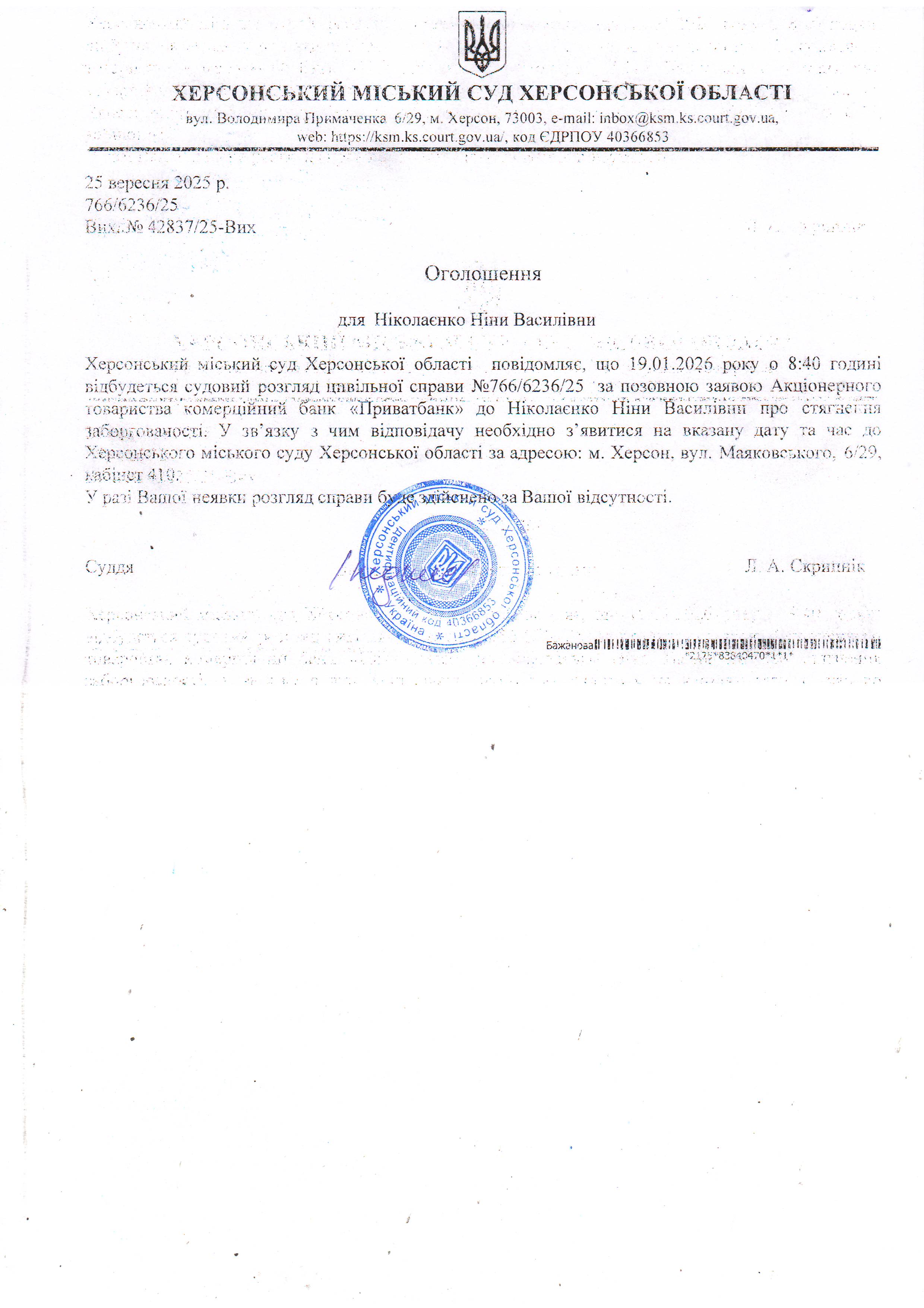 ОГОЛОШЕННЯ ПРО ВИКЛИК ДО СУДУ
