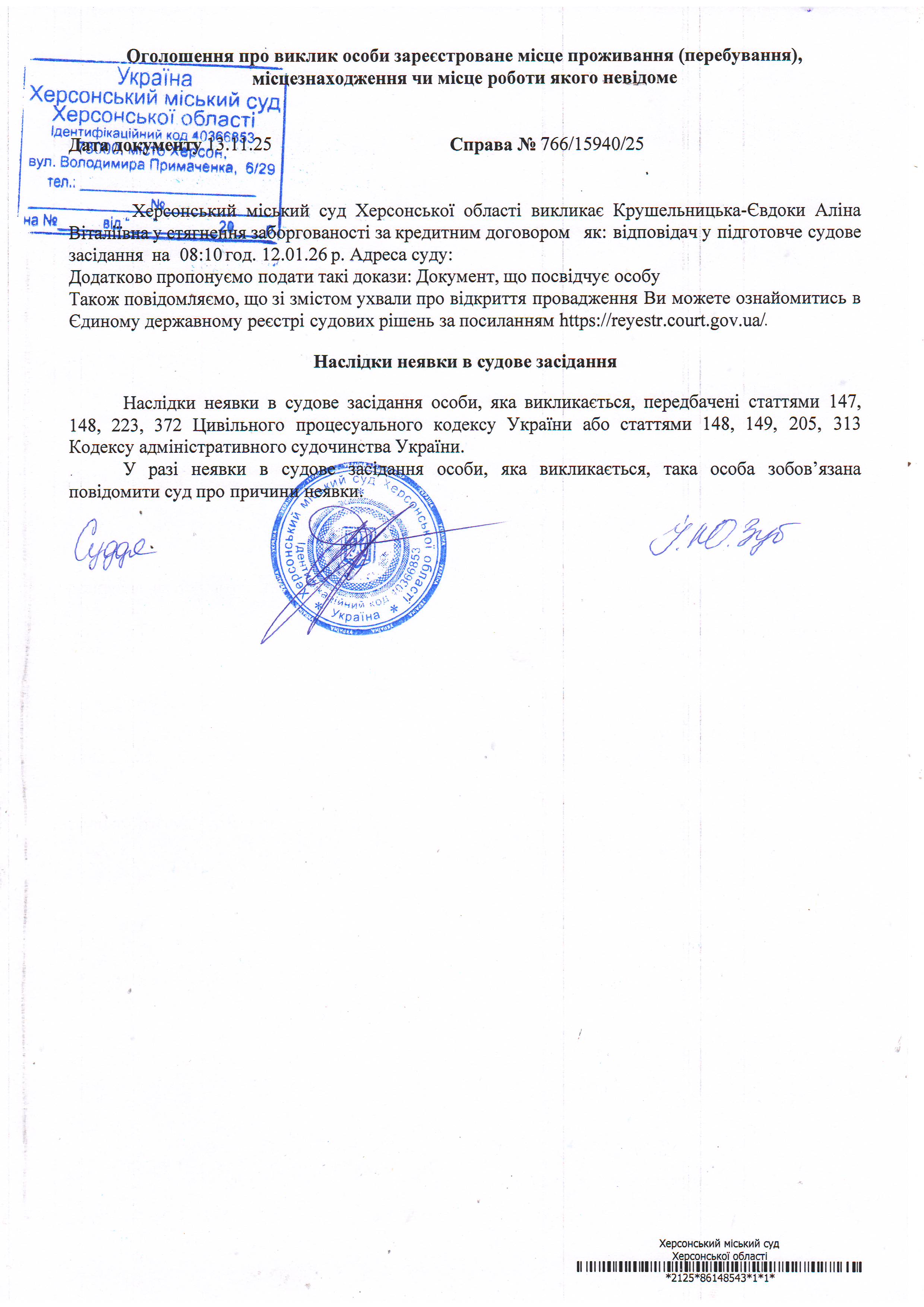 ОГОЛОШЕННЯ ПРО ВИКЛИК ДО СУДУ