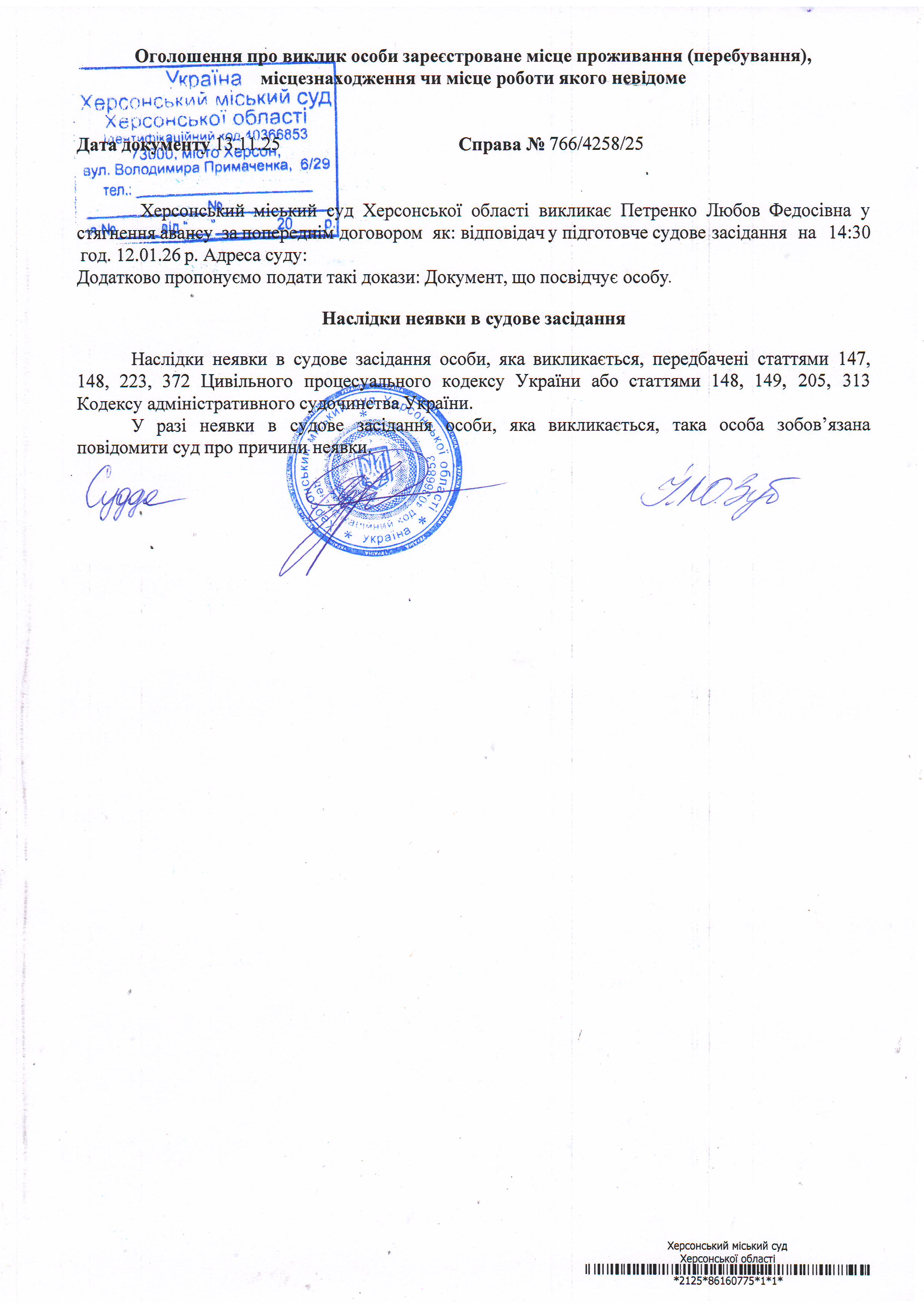 ОГОЛОШЕННЯ ПРО ВИКЛИК ДО СУДУ
