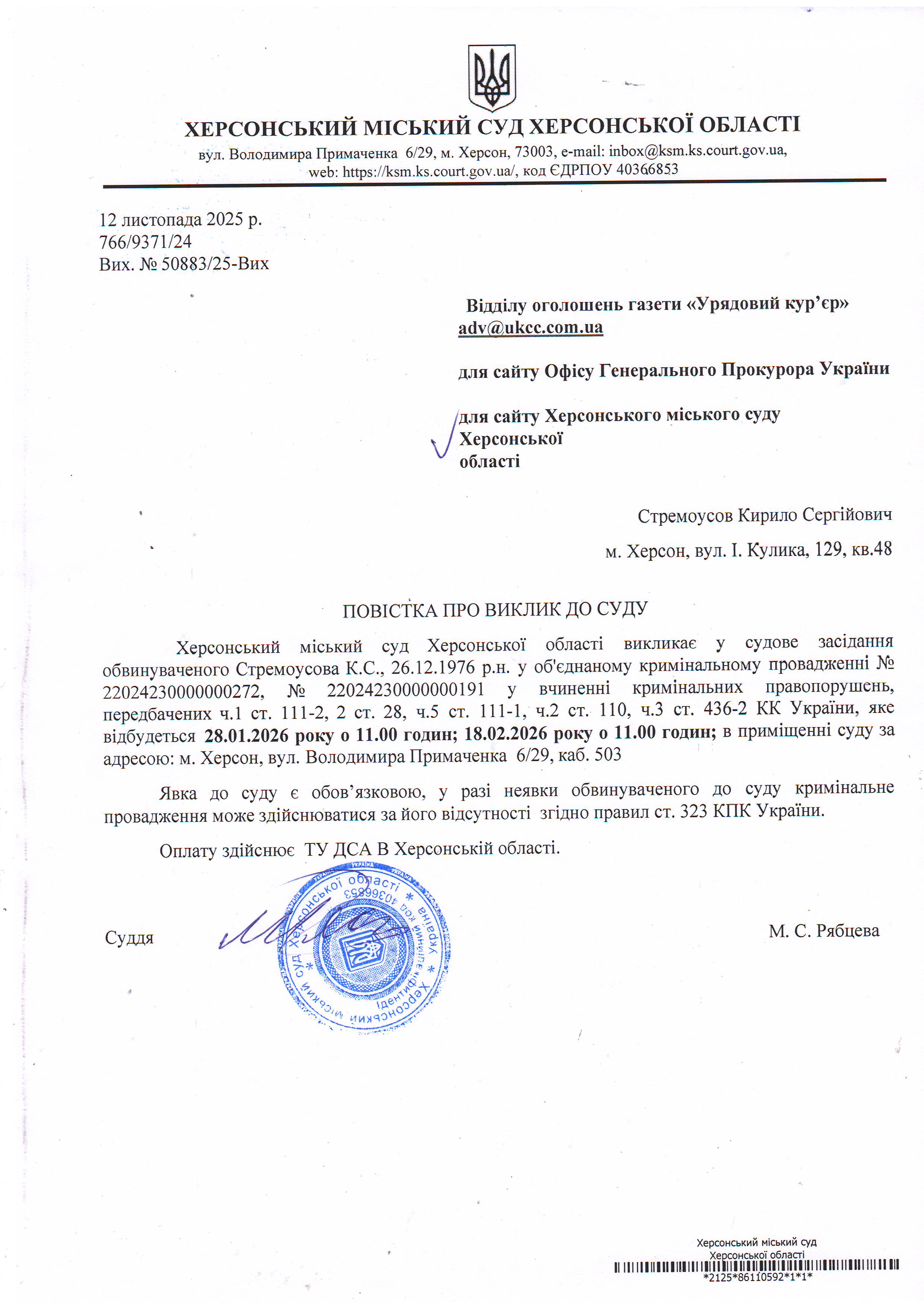 Оголошення про виклик особи в суд та повідомлення про судове рішення