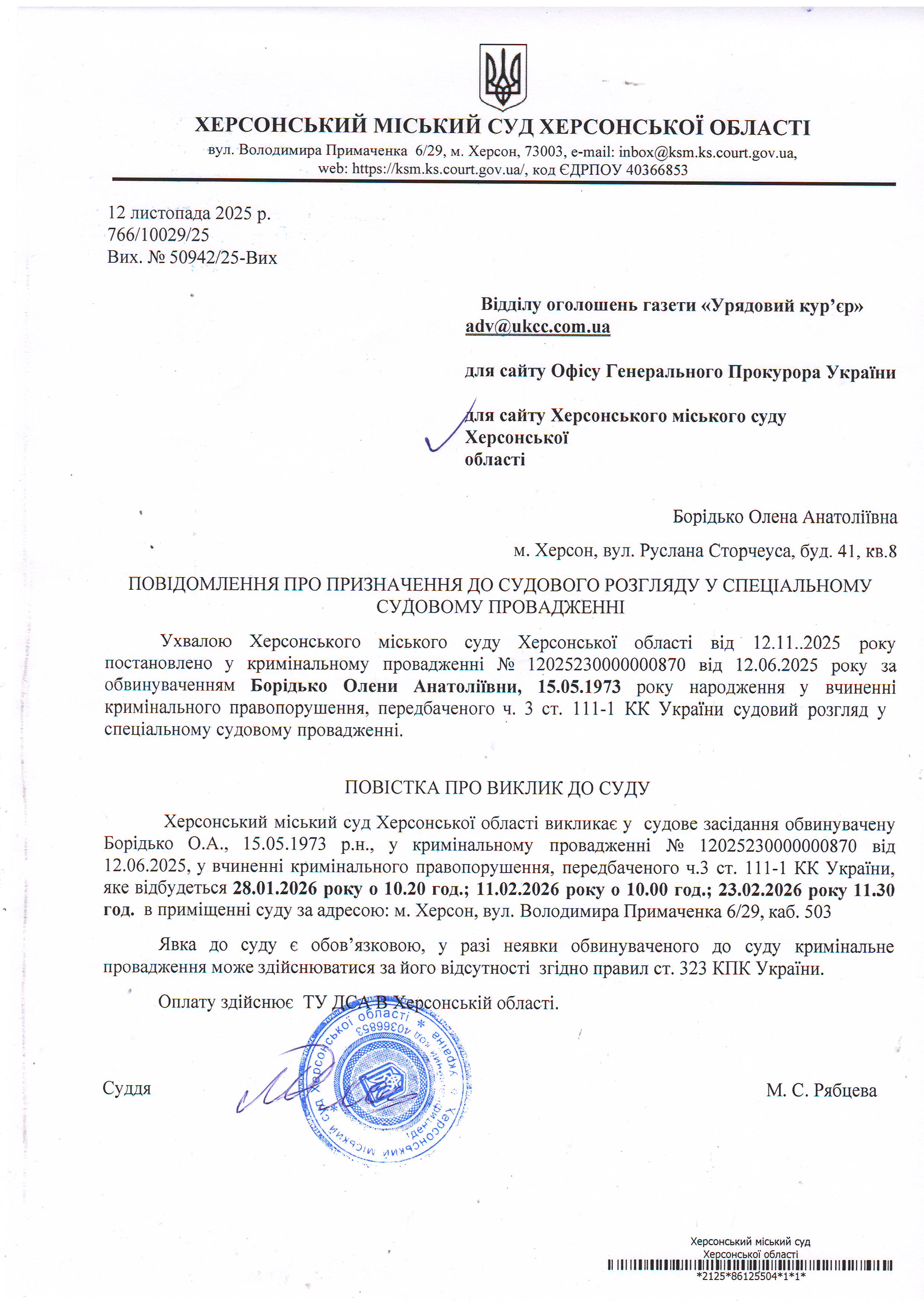 ОГОЛОШЕННЯ ПРО ВИКЛИК ДО СУДУ