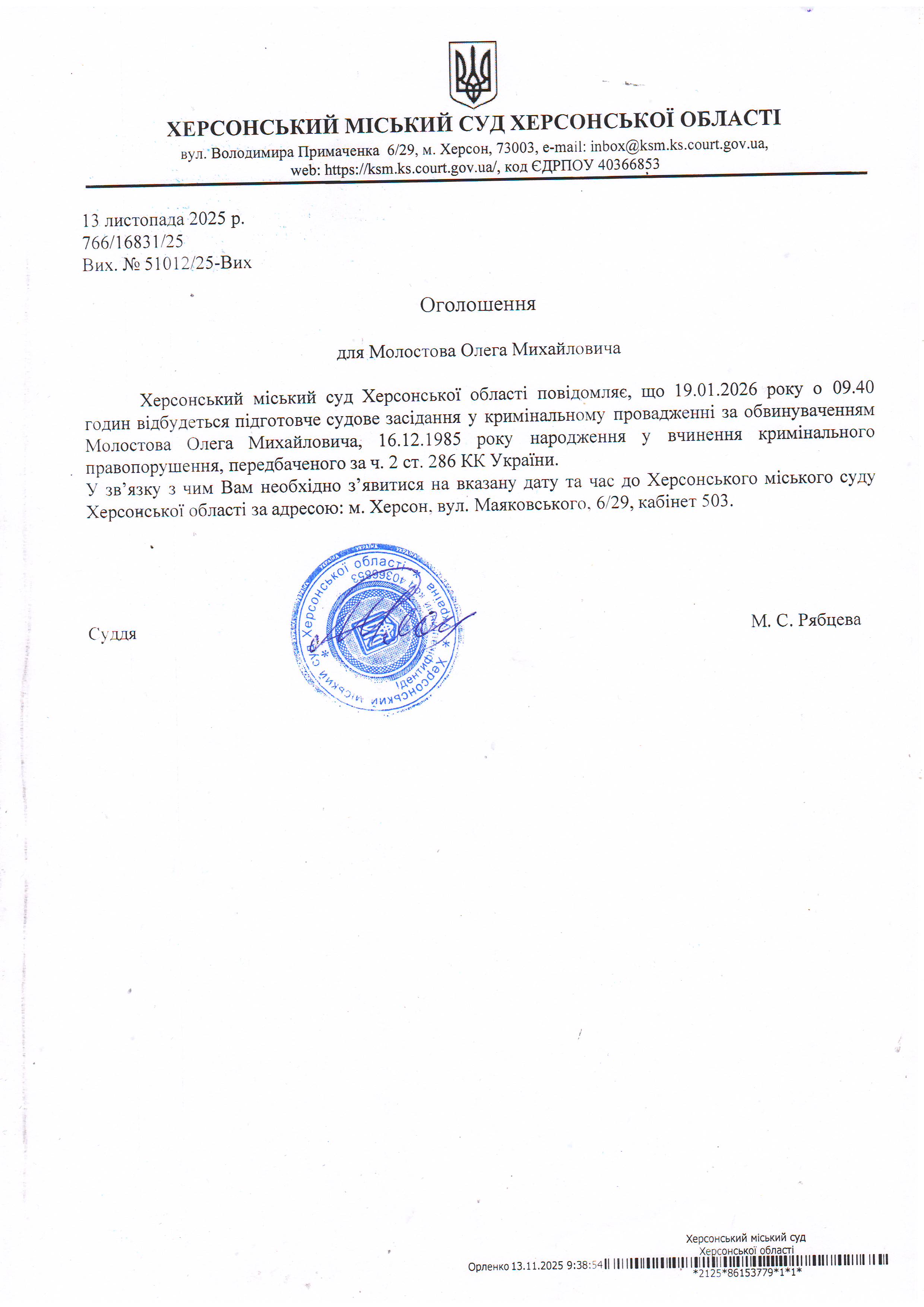 ОГОЛОШЕННЯ ПРО ВИКЛИК ДО СУДУ