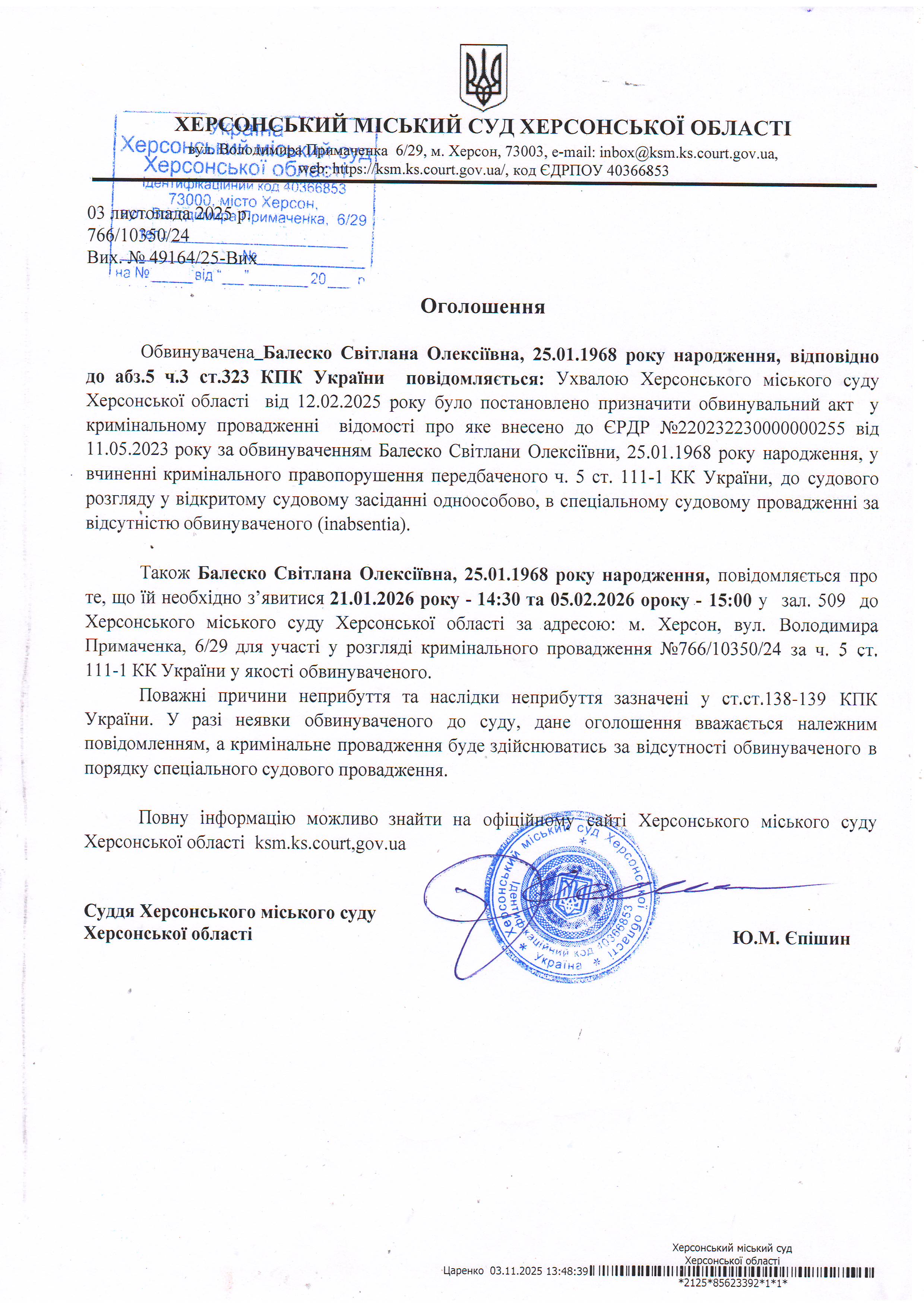 ОГОЛОШЕННЯ ПРО ВИКЛИК ДО СУДУ