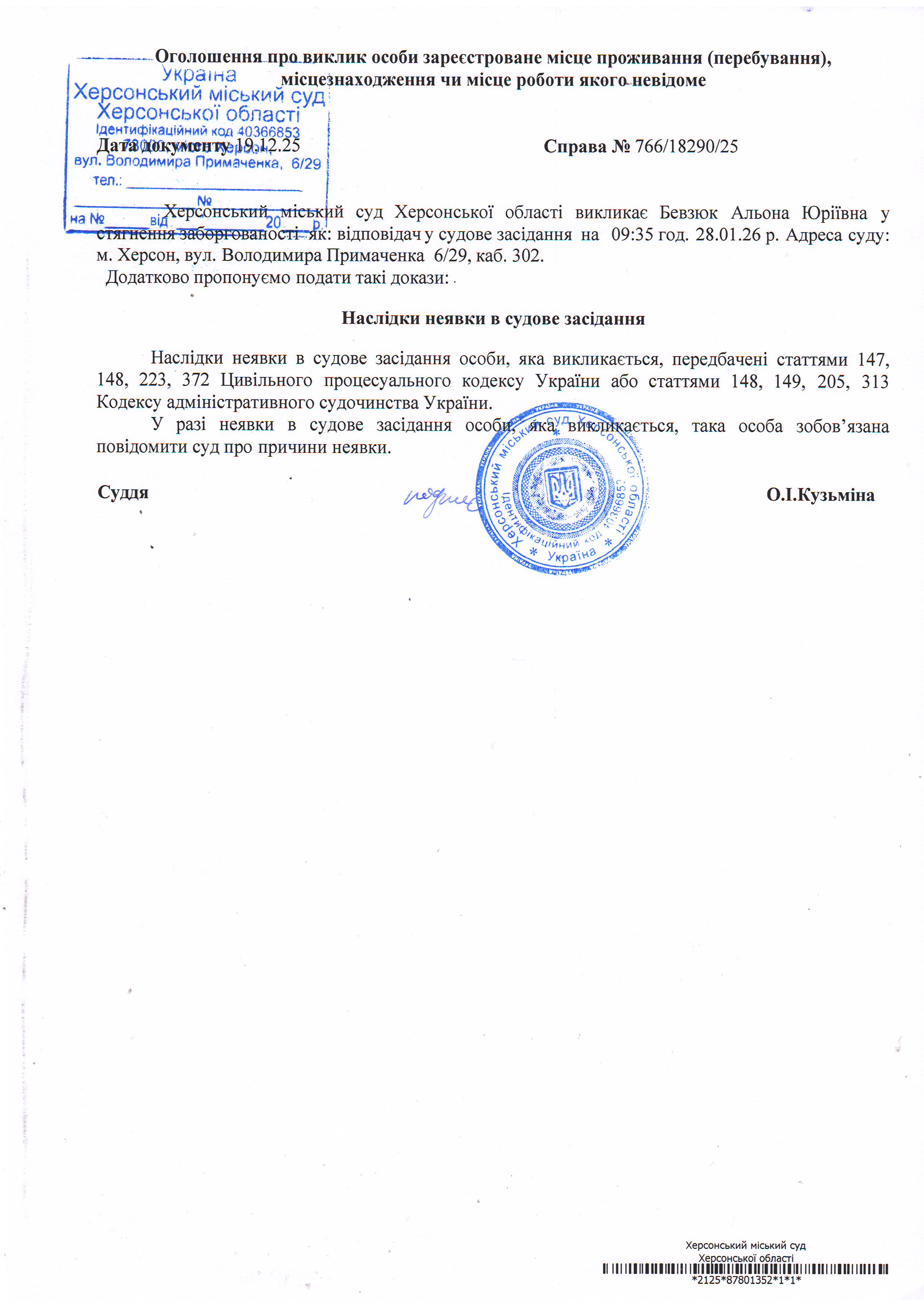 ОГОЛОШЕННЯ ПРО ВИКЛИК ДО СУДУ