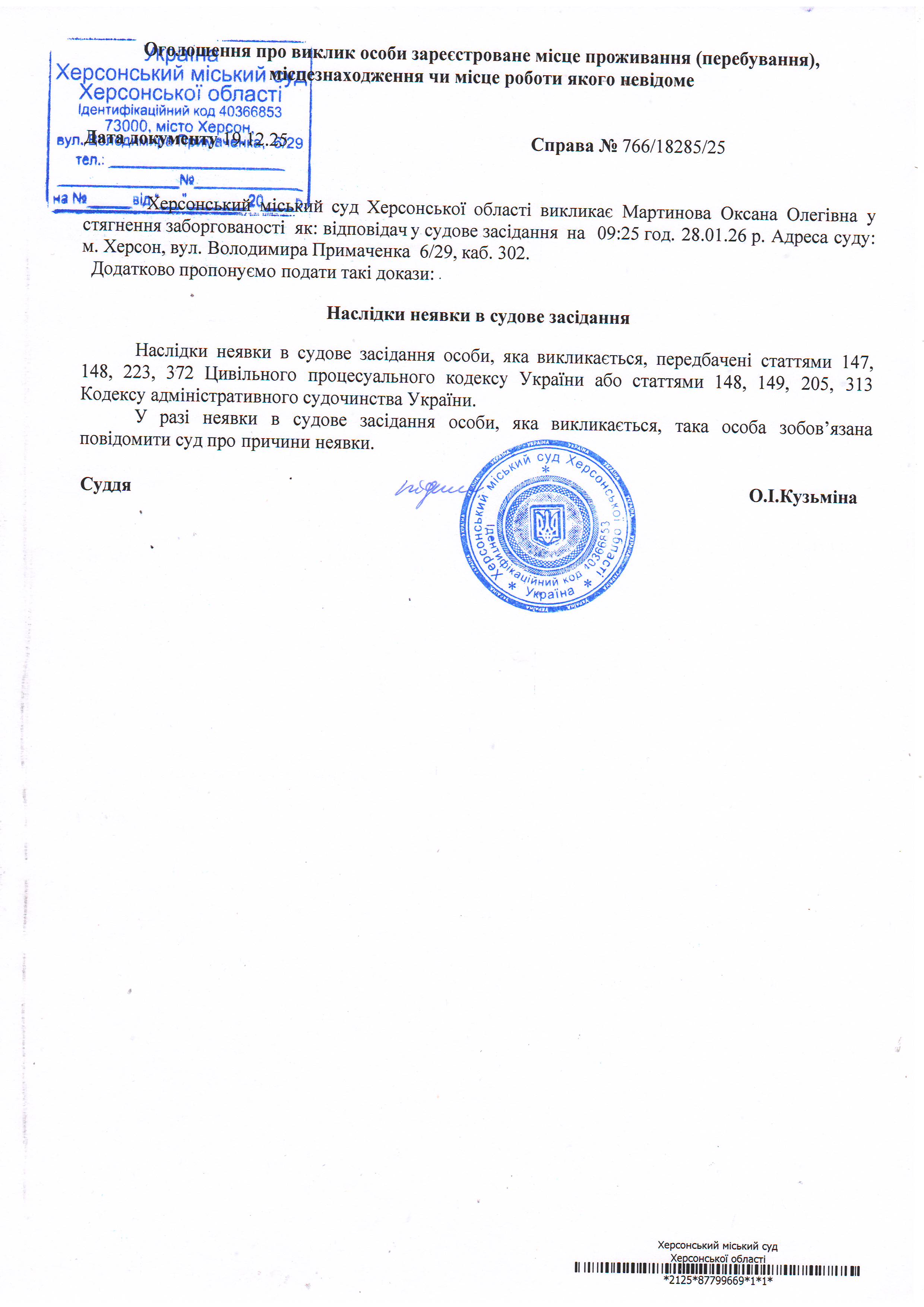 ОГОЛОШЕННЯ ПРО ВИКЛИК ДО СУДУ