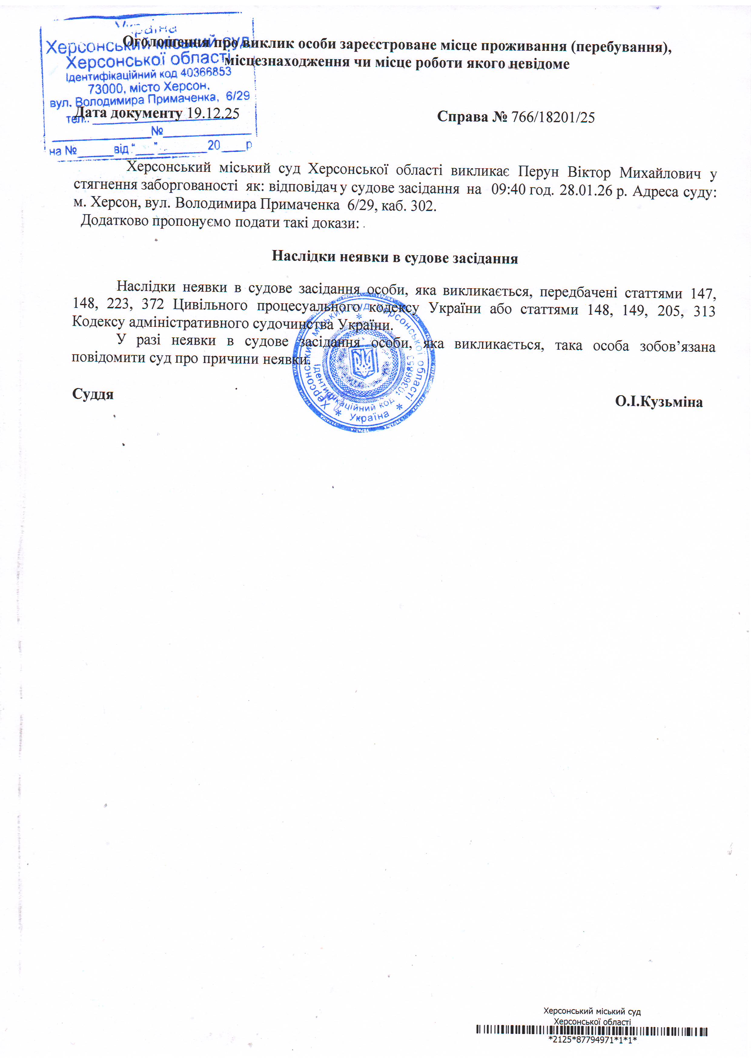 ОГОЛОШЕННЯ ПРО ВИКЛИК ДО СУДУ