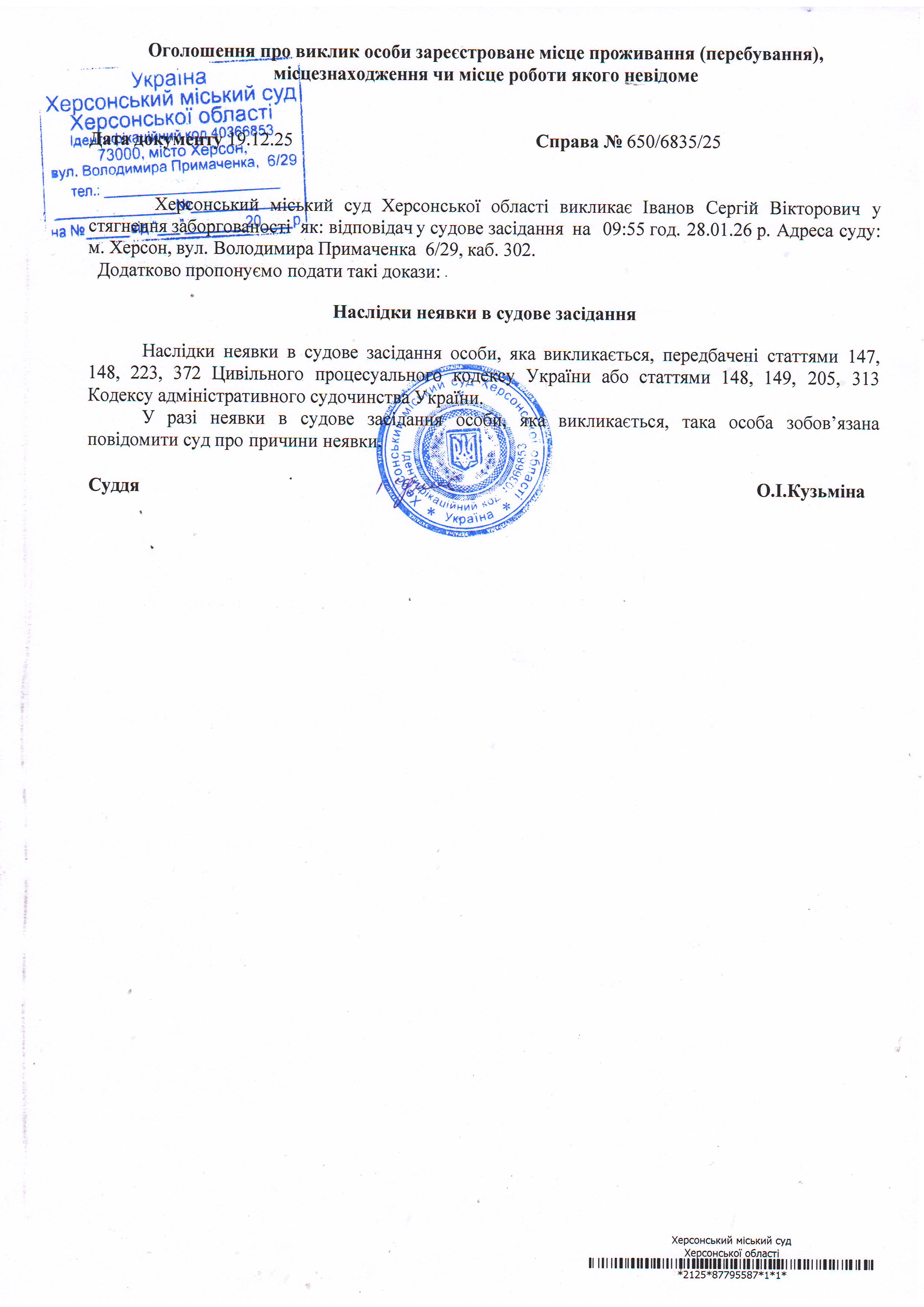 ОГОЛОШЕННЯ ПРО ВИКЛИК ДО СУДУ