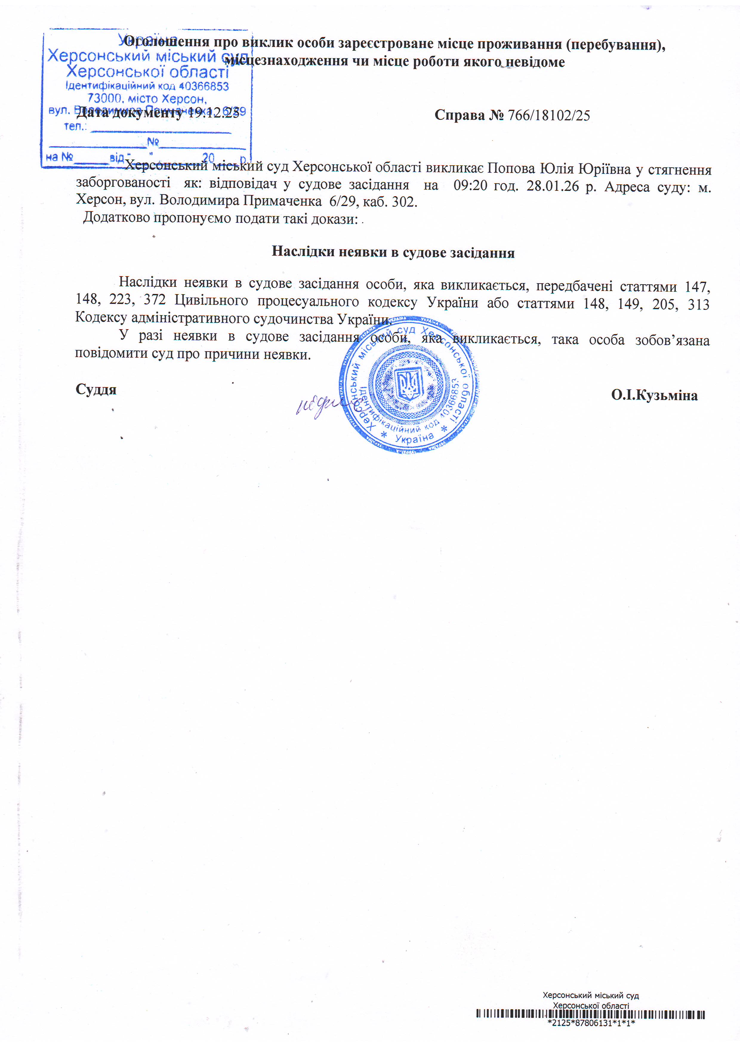 ОГОЛОШЕННЯ ПРО ВИКЛИК ДО СУДУ