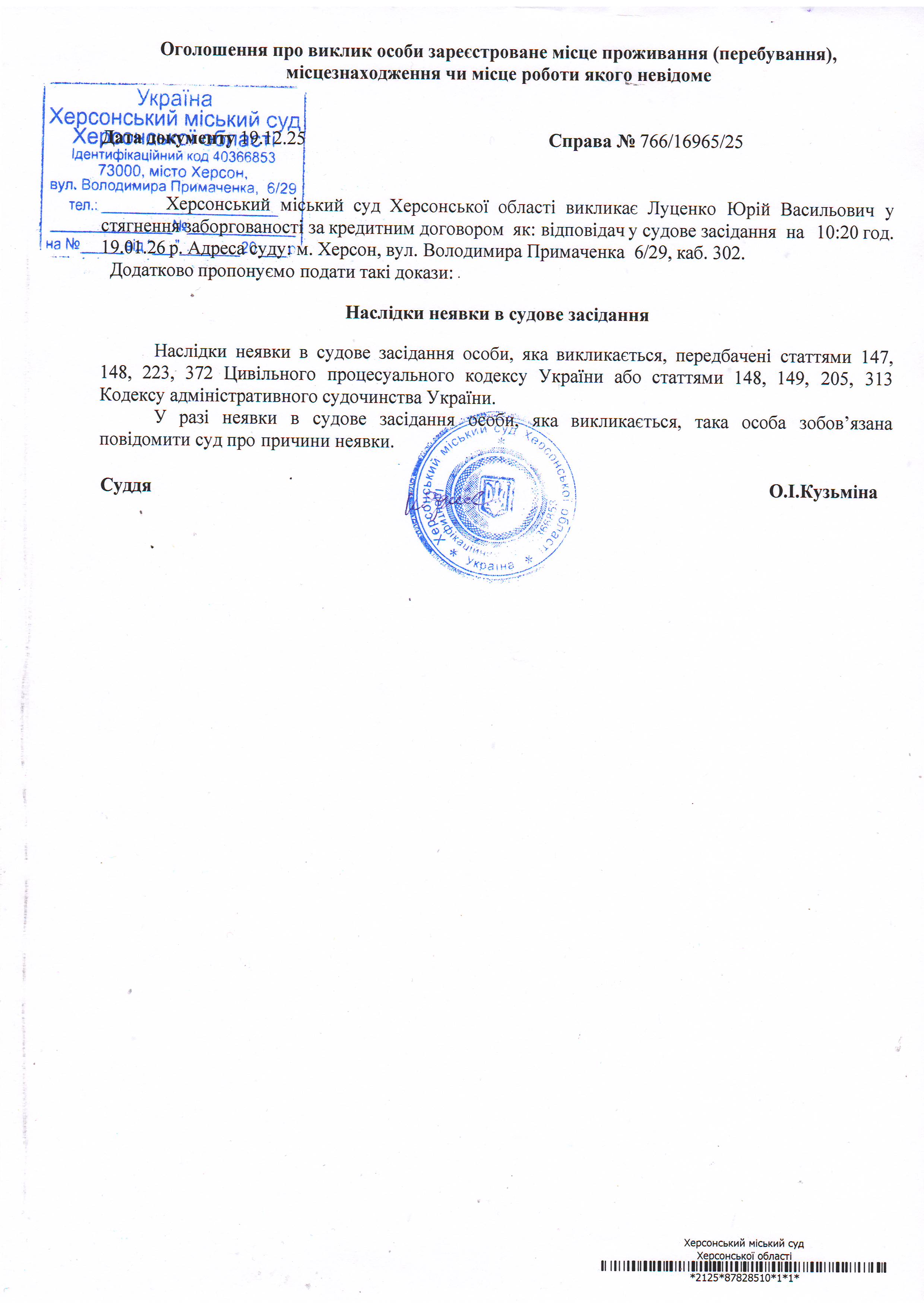 ОГОЛОШЕННЯ ПРО ВИКЛИК ДО СУДУ