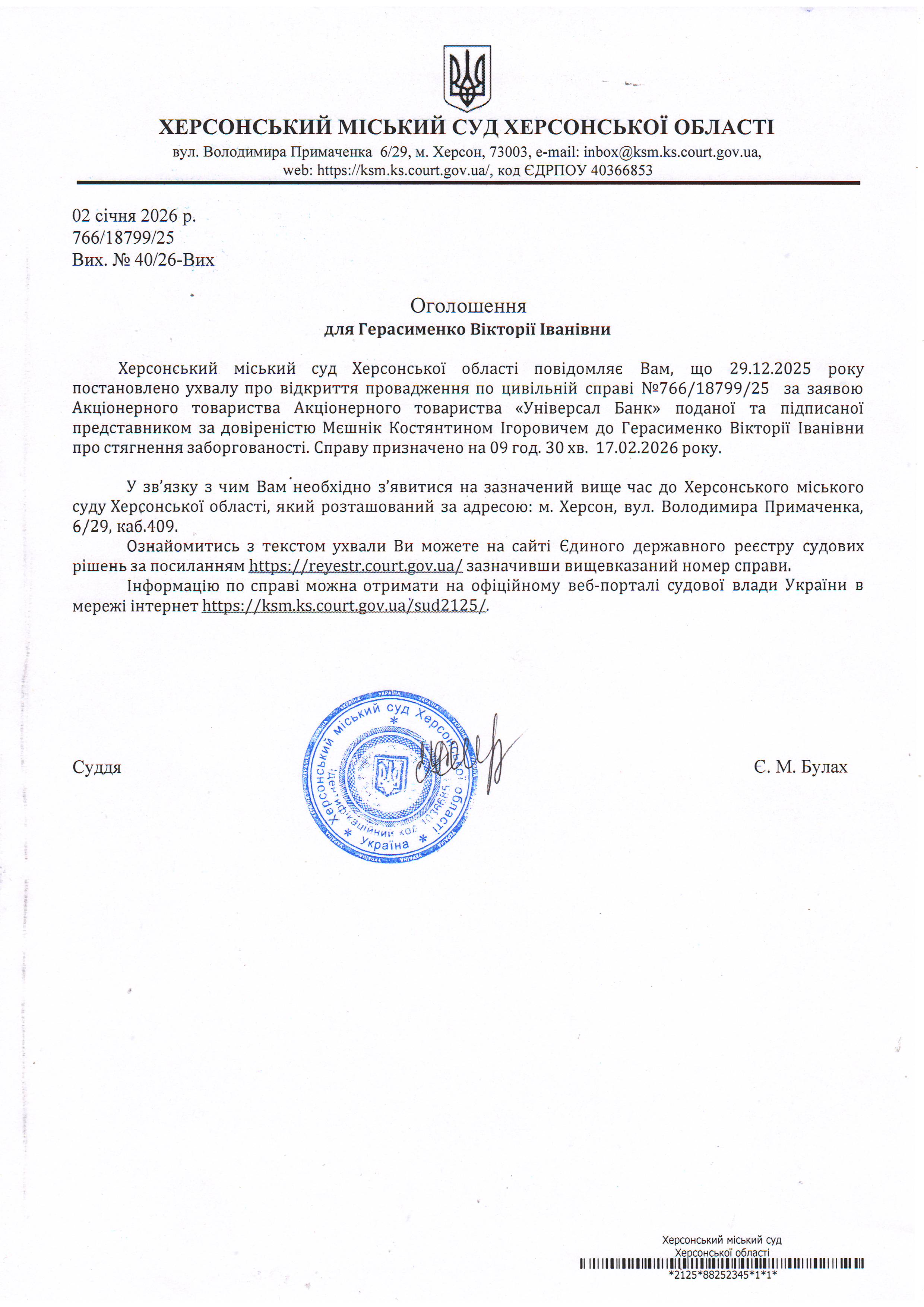 ОГОЛОШЕННЯ ПРО ВИКЛИК ДО СУДУ
