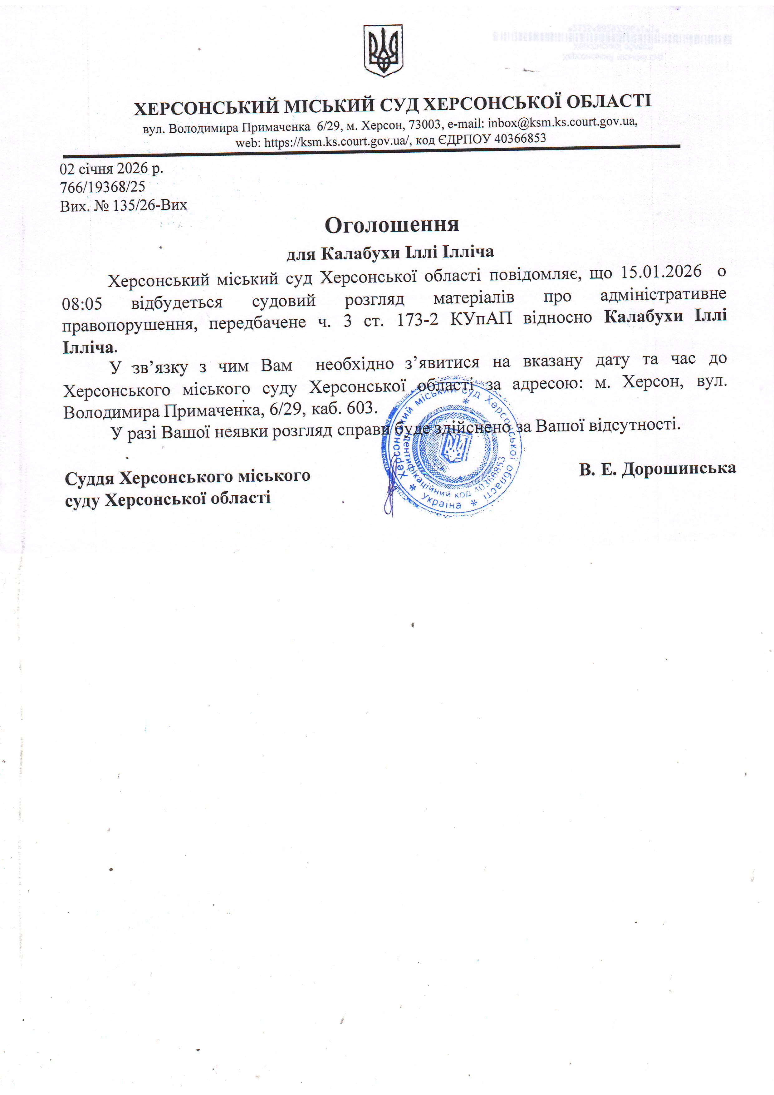 ОГОЛОШЕННЯ ПРО ВИКЛИК ДО СУДУ
