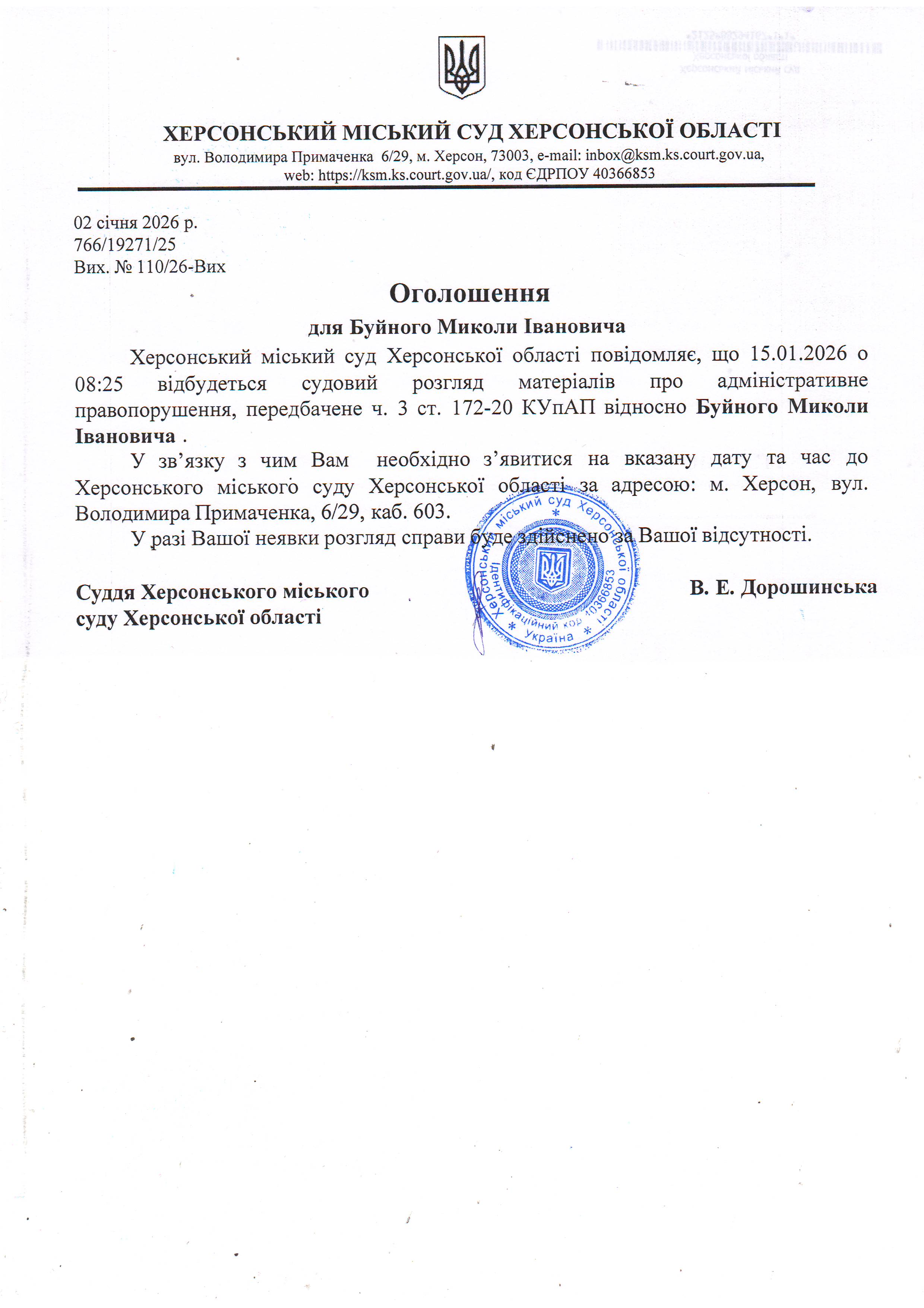 ОГОЛОШЕННЯ ПРО ВИКЛИК ДО СУДУ