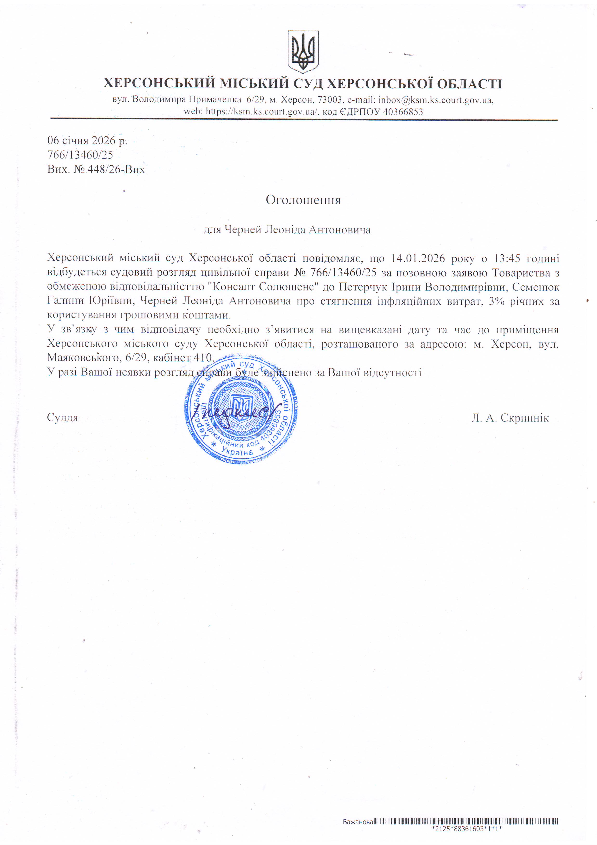 ОГОЛОШЕННЯ ПРО ВИКЛИК ДО СУДУ