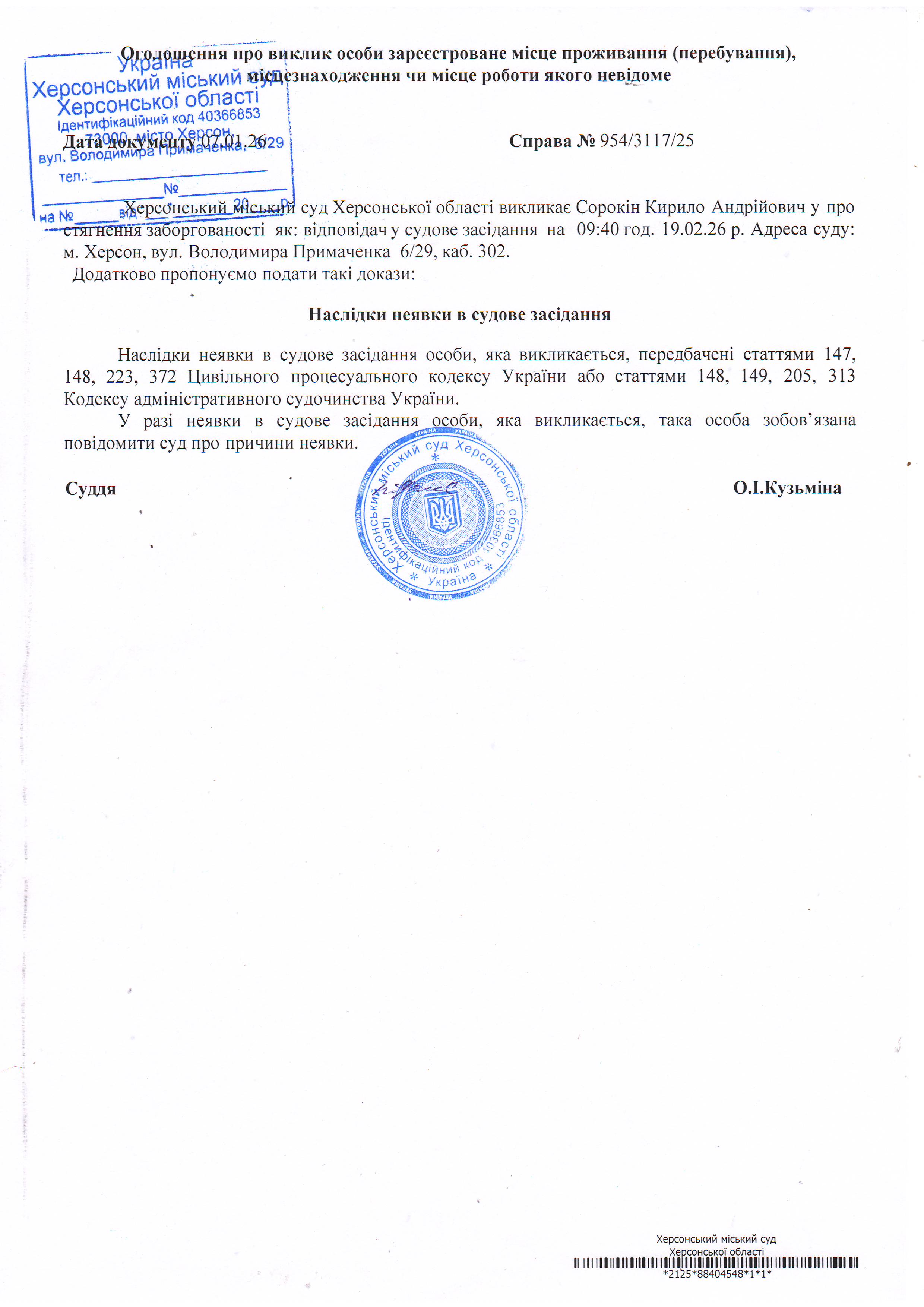 ОГОЛОШЕННЯ ПРО ВИКЛИК ДО СУДУ