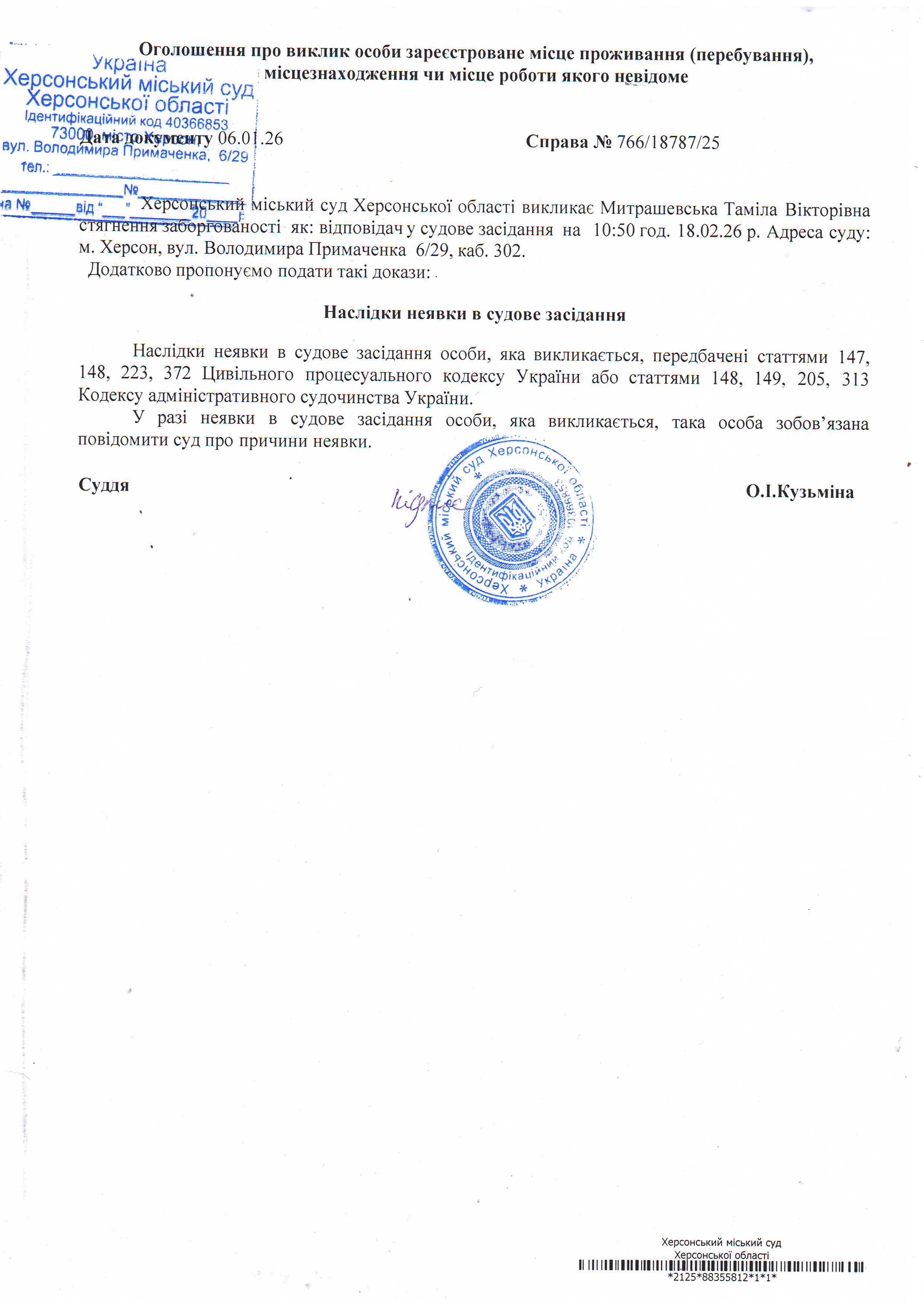 ОГОЛОШЕННЯ ПРО ВИКЛИК ДО СУДУ
