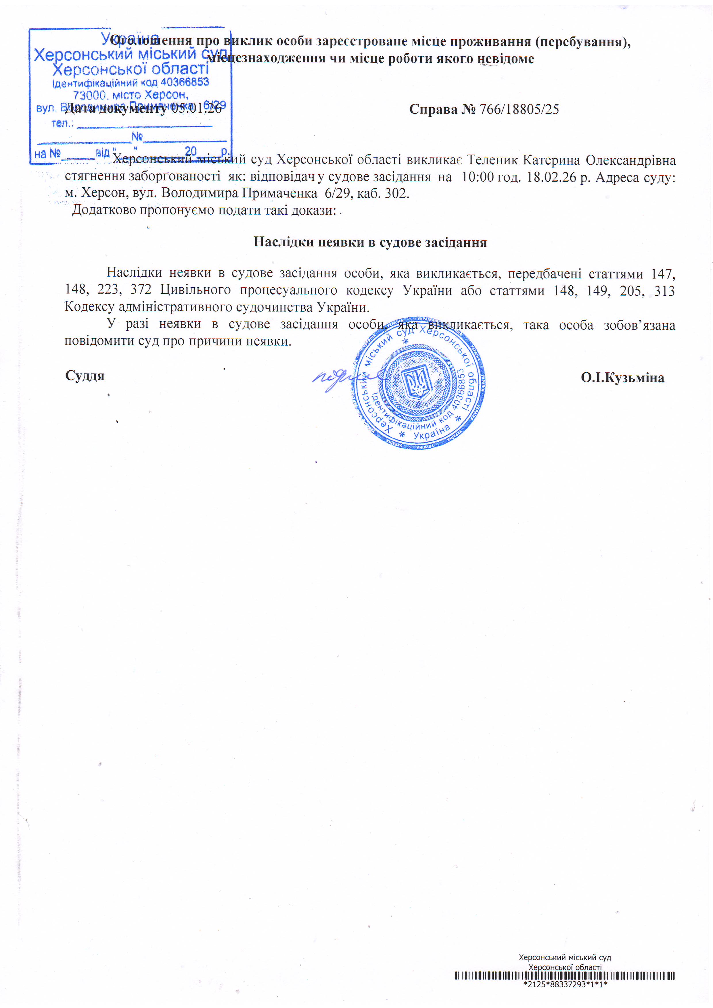ОГОЛОШЕННЯ ПРО ВИКЛИК ДО СУДУ