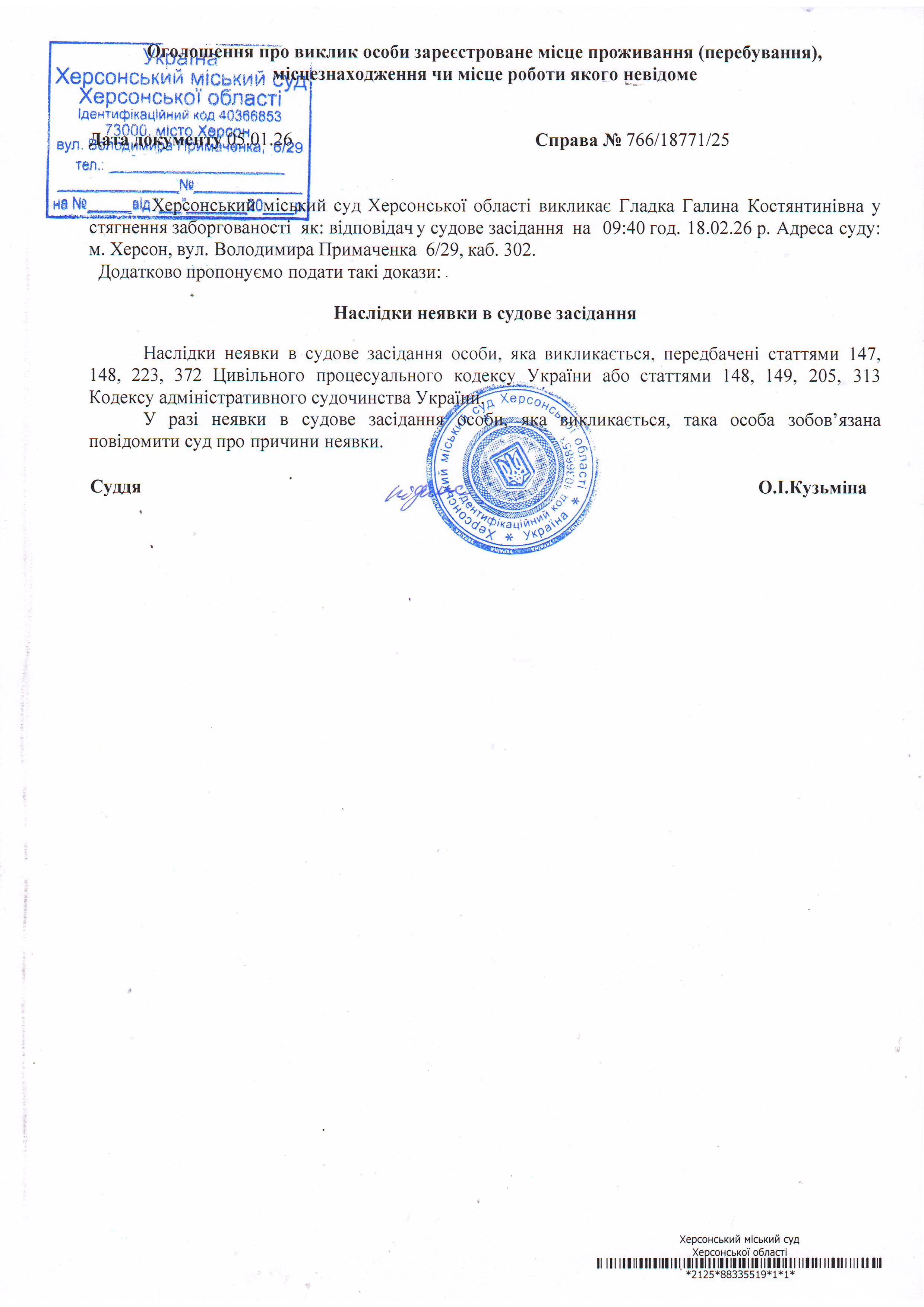 ОГОЛОШЕННЯ ПРО ВИКЛИК ДО СУДУ