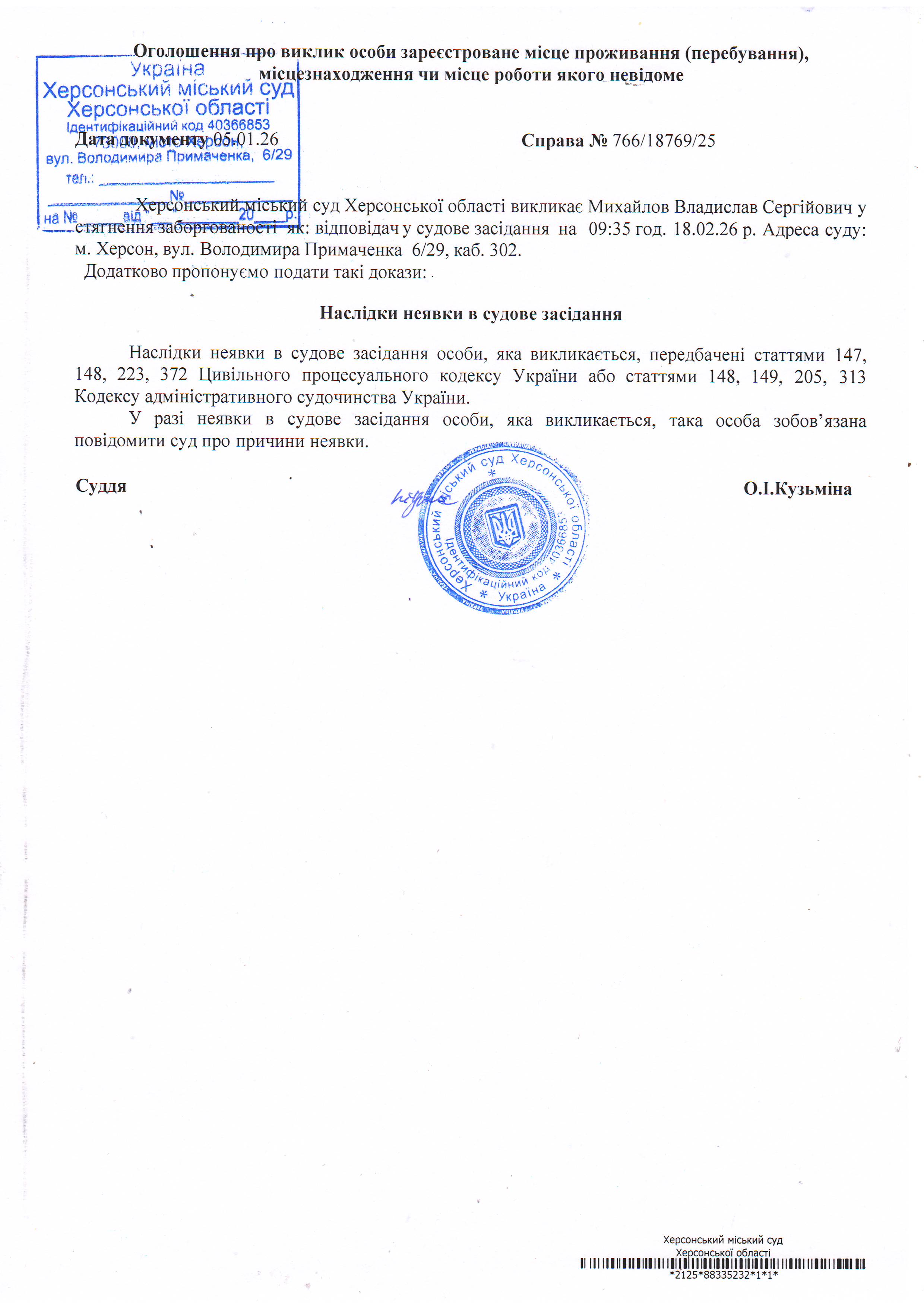 ОГОЛОШЕННЯ ПРО ВИКЛИК ДО СУДУ