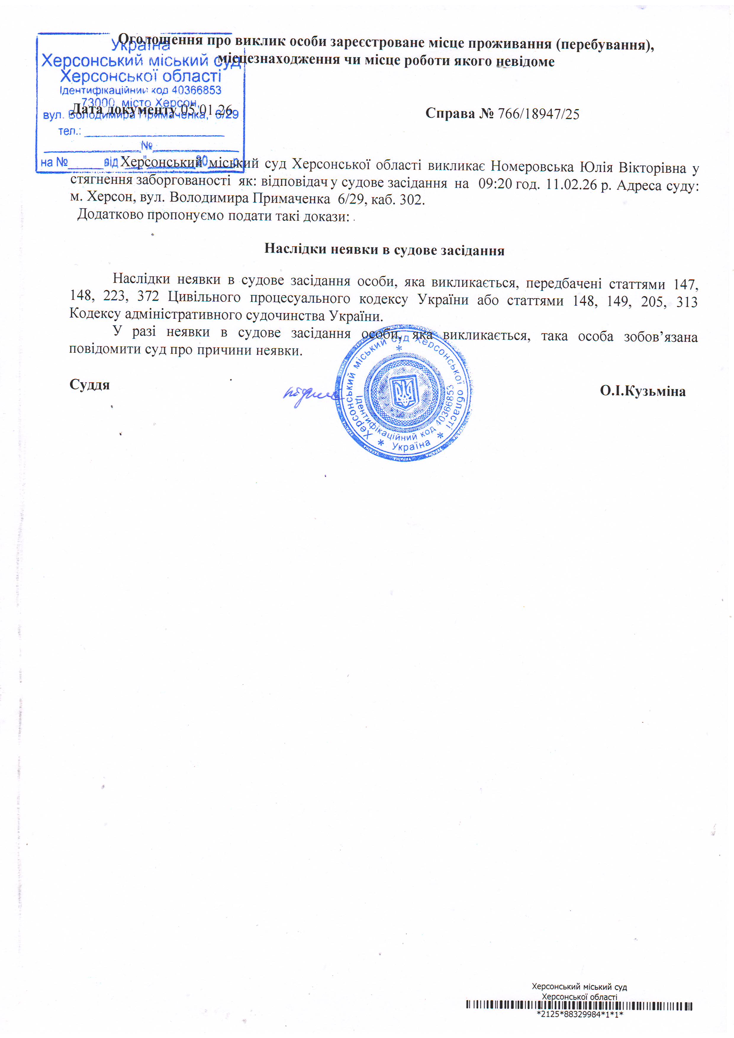 ОГОЛОШЕННЯ ПРО ВИКЛИК ДО СУДУ