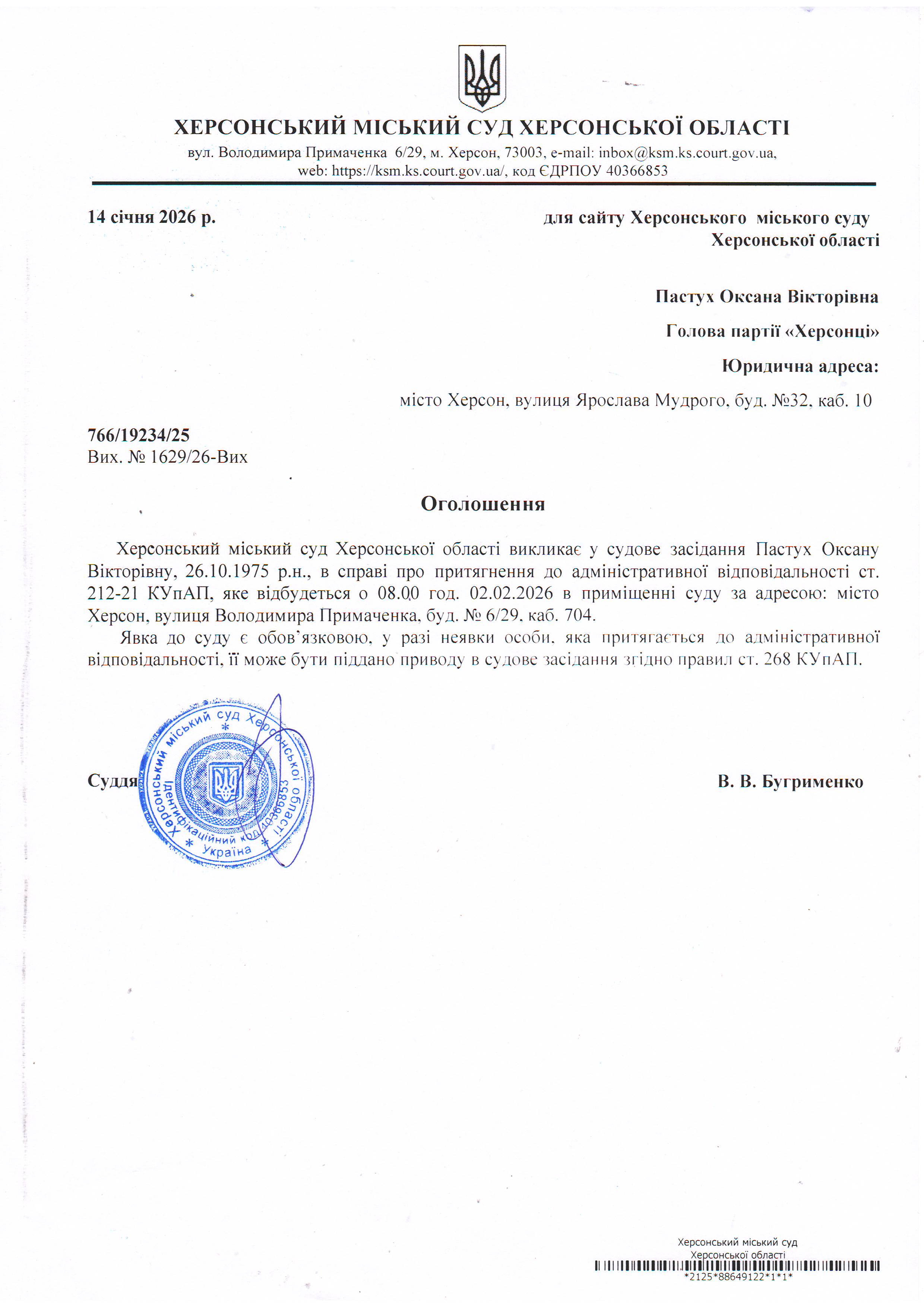Інформація про місцезнаходження Херсонського міського суду Херсонської області